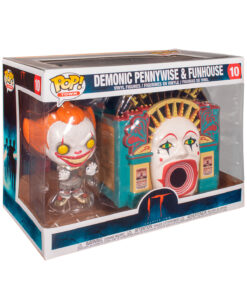 Este conjunto de figuras Pop incluye al malévolo Pennywise con una sonrisa demoníaca junto a la casa de la diversión.