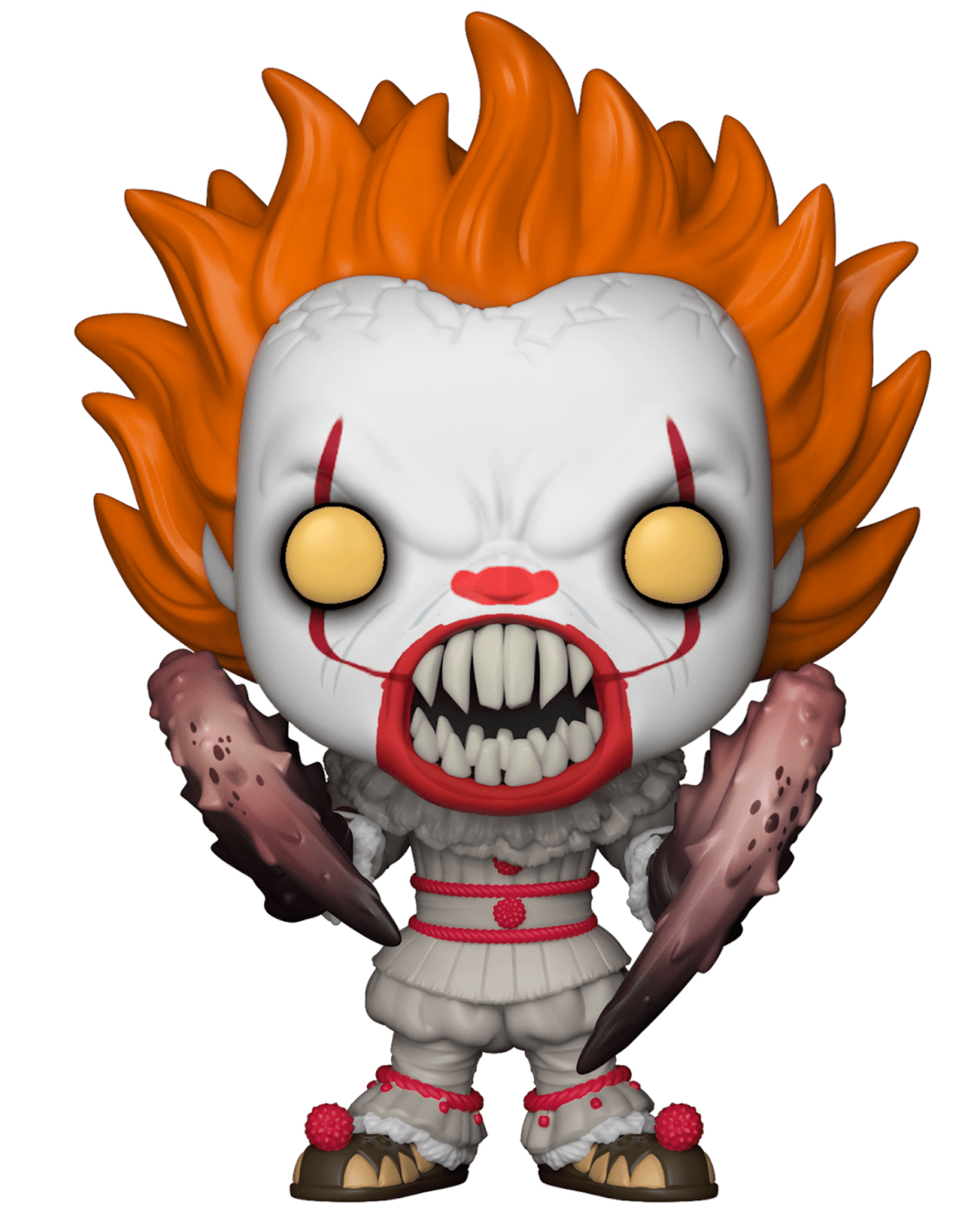 Hecho de vinilo con este Stephen King’s Pennywise Clown Pop! Sosteniendo un barco. El payaso asesino demente parece fiel a la forma con sus dientes afilados, cejas extrañas y traje de payaso.