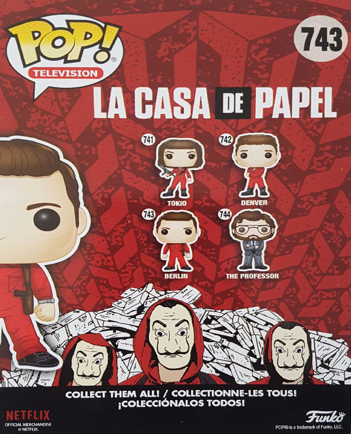 Ocho ladrones toman rehenes y se resguardan en la Fábrica Nacional de Moneda de España, mientras el líder de la banda manipula a la policía para cumplir con su plan. Ayuda a este grupo de estafadores a cumplir su reto coleccionando las figuras de Funko Pop, cada personaje viene con su traje característico con una medida de 10 cm aproximadamente.