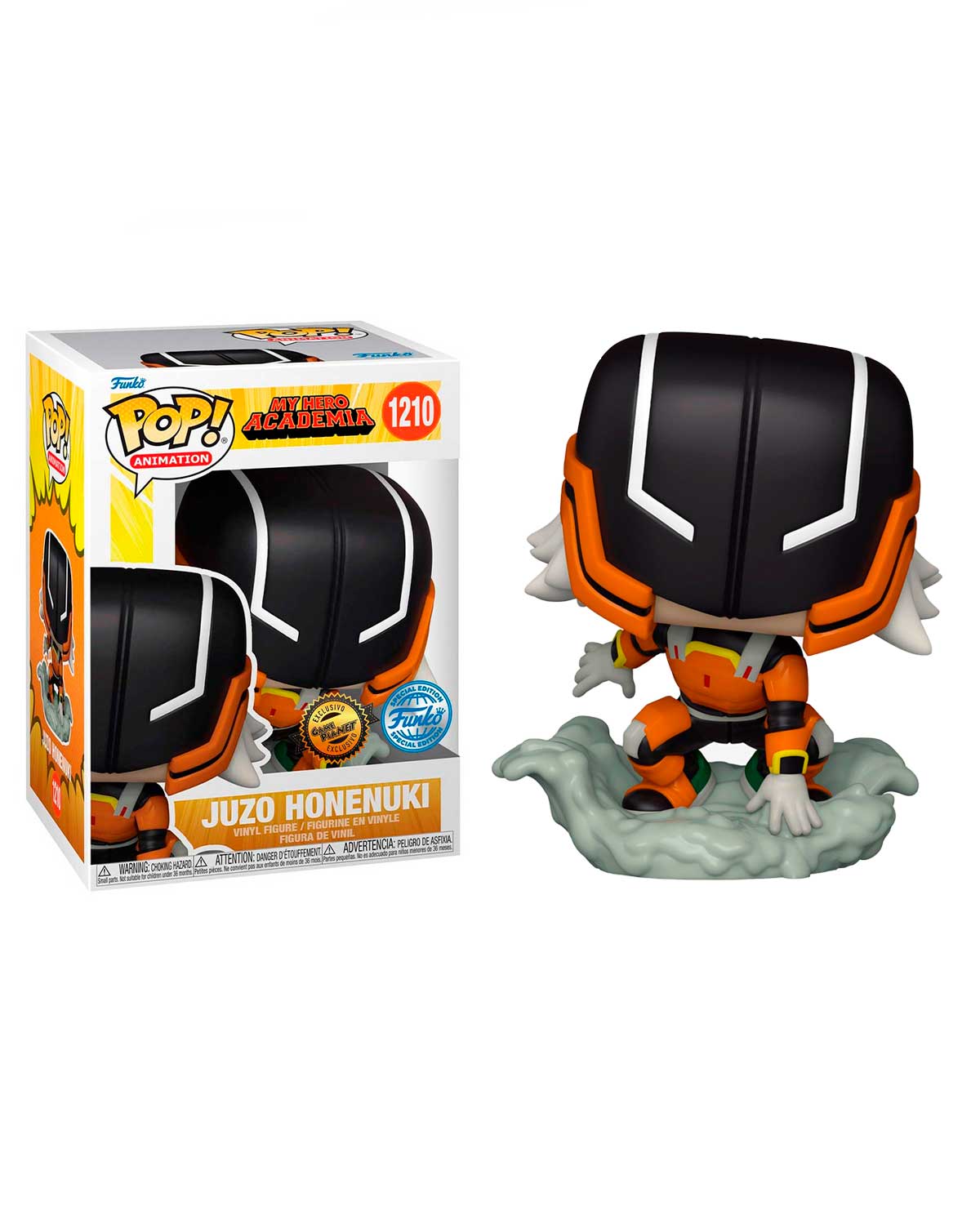 ¿Listo para suavizar las cosas? Vestido con su traje de héroe naranja y casco, Juzo Honenuki se agacha para usar su Quirk suavizando el suelo debajo de él.