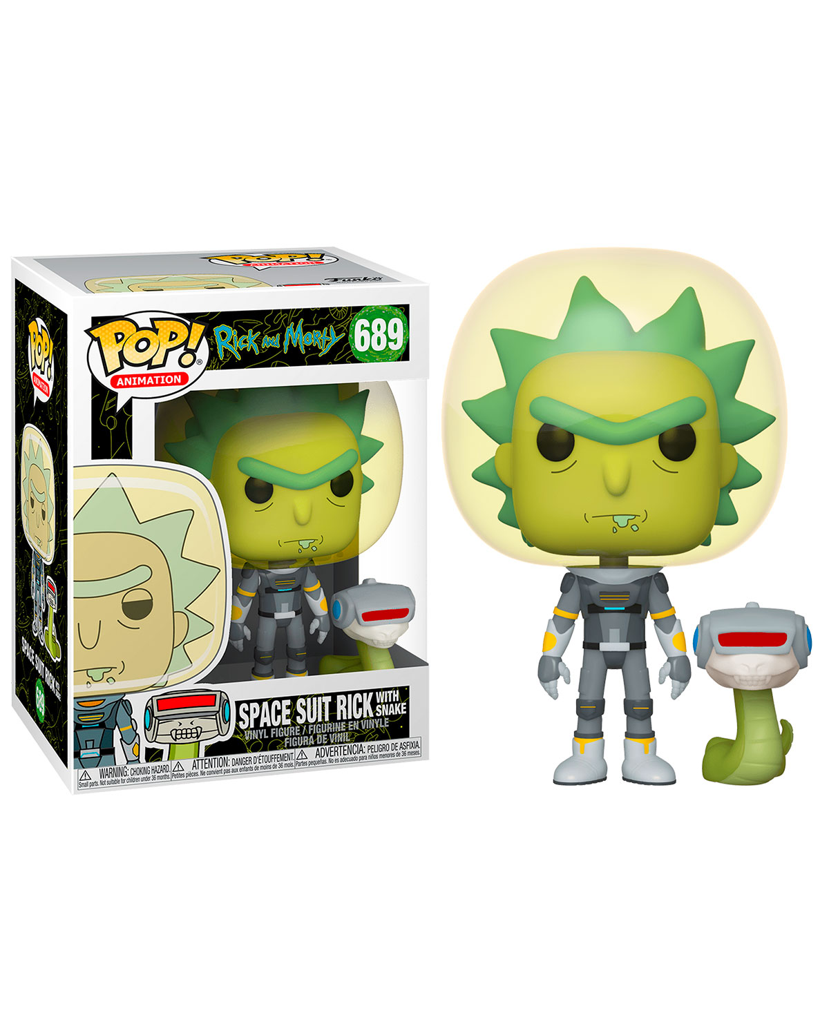 Este Pop presenta a Rick en un traje espacial y viene acompañado de una serpiente.