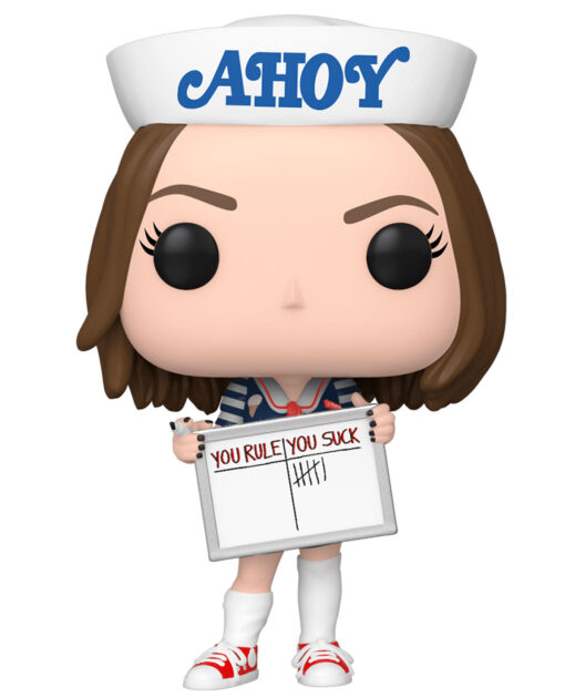 Este Pop presenta a Robin sosteniendo un letrero donde anota una raya cada que Steve no logra coquetear con las damas.
