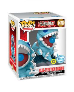¡Prepárate para batirte en duelo en tu colección Yu-Gi-Oh! jugando tu carta Dragón Toon de Ojos Azules! ¡Invoca a esta criatura a tu Arena de Duelo como este Pop exclusivo que brilla en la oscuridad!