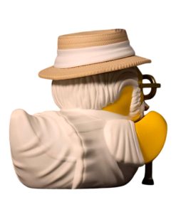 ¡Bienvenido a Jurassic Park… versión pato! El visionario detrás del parque de dinosaurios más famoso del cine llega en forma de pato coleccionable, con su característico sombrero Panamá, bastón y atuendo blanco.