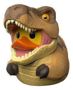 ¡El rey de los dinosaurios se convierte en pato cosplay! Esta figura miniatura captura la esencia del T-Rex con dientes afilados, textura escamosa y actitud prehistórica, todo en un formato ideal para espacios reducidos.