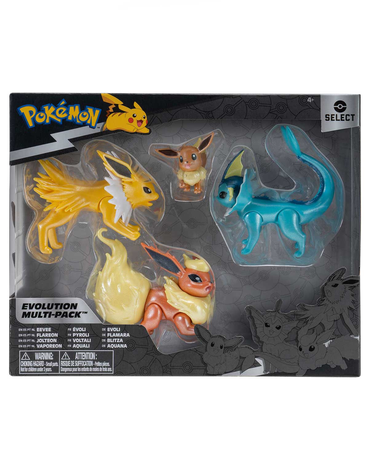 El paquete incluye a Eevee, Jolteon, Vaporeon y Flareon. Todos tienen detalles auténticos y parecen sacados directamente de la serie animada Pokémon.