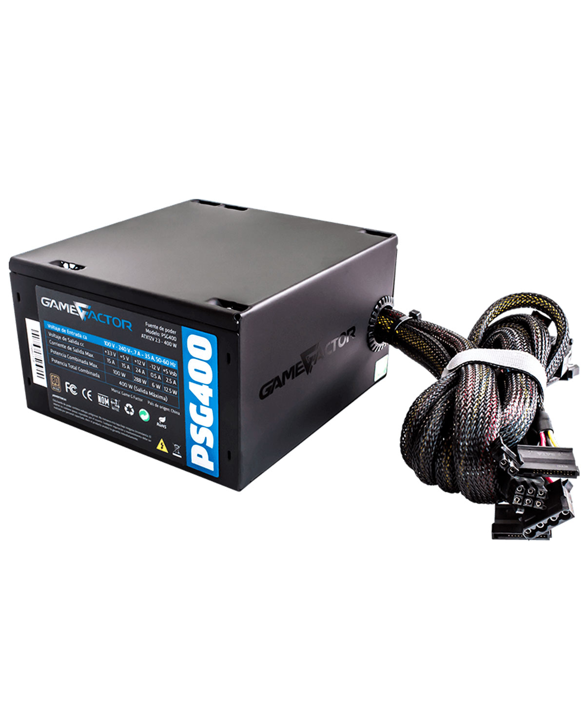 La fuente de poder PSG400 de Game Factor cuenta con certificación 80 PLUS BRONZE que garantiza más del 80% de eficiencia.