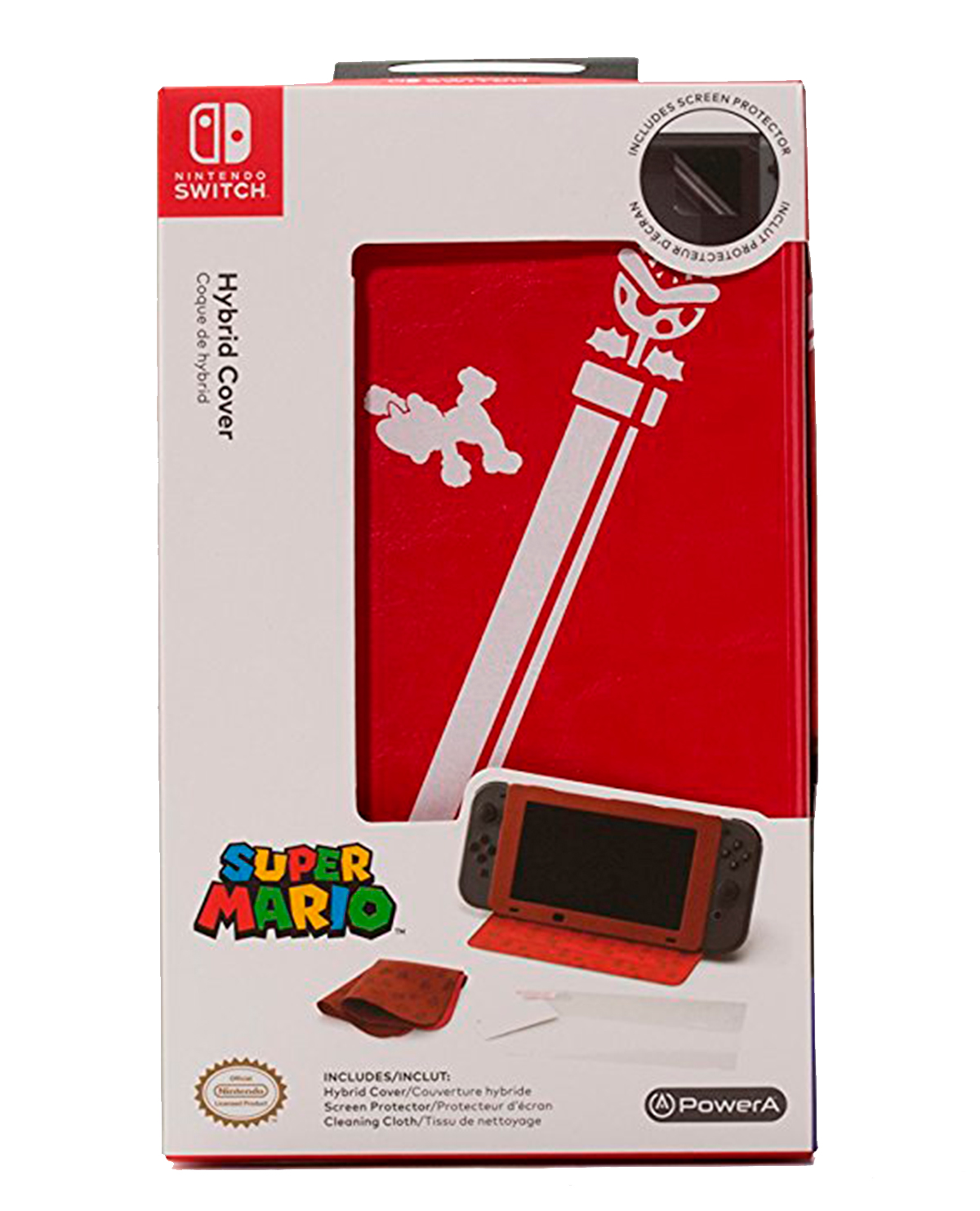 Juega con una mayor comodidad en modo portátil con tu consola Nintendo Switch con esta base con un diseño único de Mario Bros, tiene un tamaño perfecto para proteger la pantalla, el material resistente para convertirse en base y aguantar todas las partidas que desees. El paquete te incluye la base, protector de pantalla y paño de limpieza.