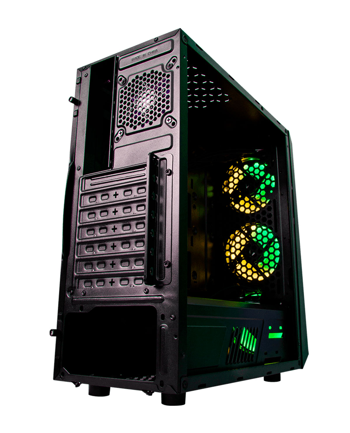 Gracias a su panel frontal metálico microperforado, el flujo de aire no será un problema. El CSG502 incluye 3 ventiladores de 120mm y uno más de 80mm en la parte trasera.