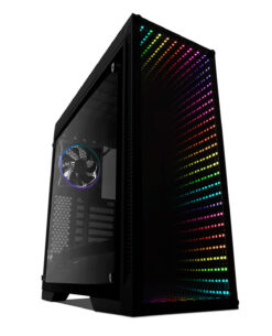 El panel frontal del CSG601 Optical cuenta con un panel de cristal templado que crea un efecto óptico llamado “Infinity Mirror” con iluminación RGB. Elige el color de tu panel frontal y ventiladores desde el controlador integrado, sin necesidad de software o accesorios adicionales. Incluso puedes conectarlo a tu motherboard compatible y controlar la iluminación desde el panel de administración de tu motherboard.