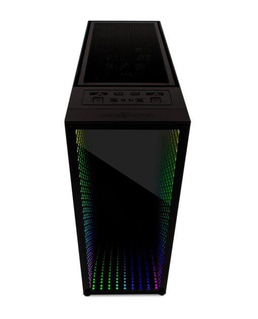 El panel frontal del CSG601 Optical cuenta con un panel de cristal templado que crea un efecto óptico llamado “Infinity Mirror” con iluminación RGB. Elige el color de tu panel frontal y ventiladores desde el controlador integrado, sin necesidad de software o accesorios adicionales. Incluso puedes conectarlo a tu motherboard compatible y controlar la iluminación desde el panel de administración de tu motherboard.