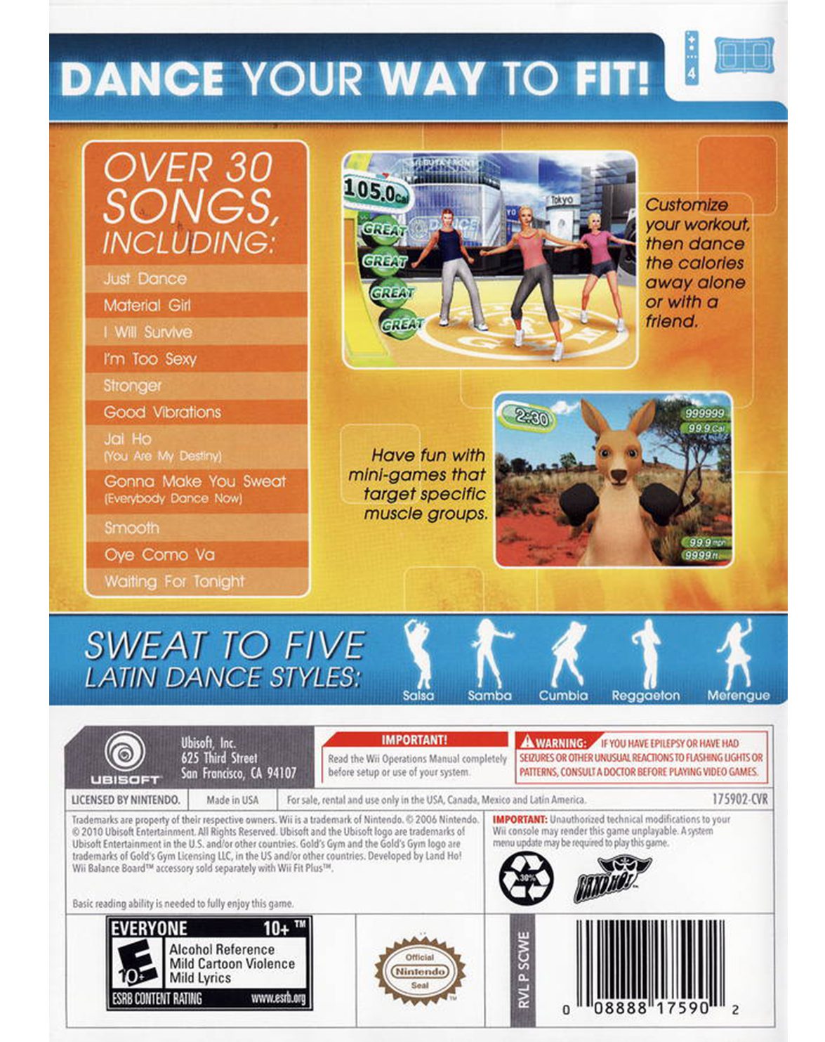 No hay mejor manera de ejercitarte que al ritmo de tu música favorita. Al ritmo de diferentes géneros como Reggaeton, Salsa, Samba, Flamenco y Merengue. El juego se adapta a tu condición física para llevarte paso a paso a ejecutar movimientos mas complicados. Además, dos jugadores simultáneos pueden participar en sesiones de juego para bailar en pareja ciertas melodías.