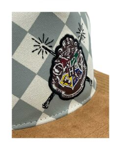 Forma parte del Mundo Mágico " Wizarding World" con esta gorra de visera plana con diseño del escudo de Hogwarts con un toque retro, donde se representan las 4 casas: Gryffindor, Ravenclaw, Hufflepuff y Slytherin.