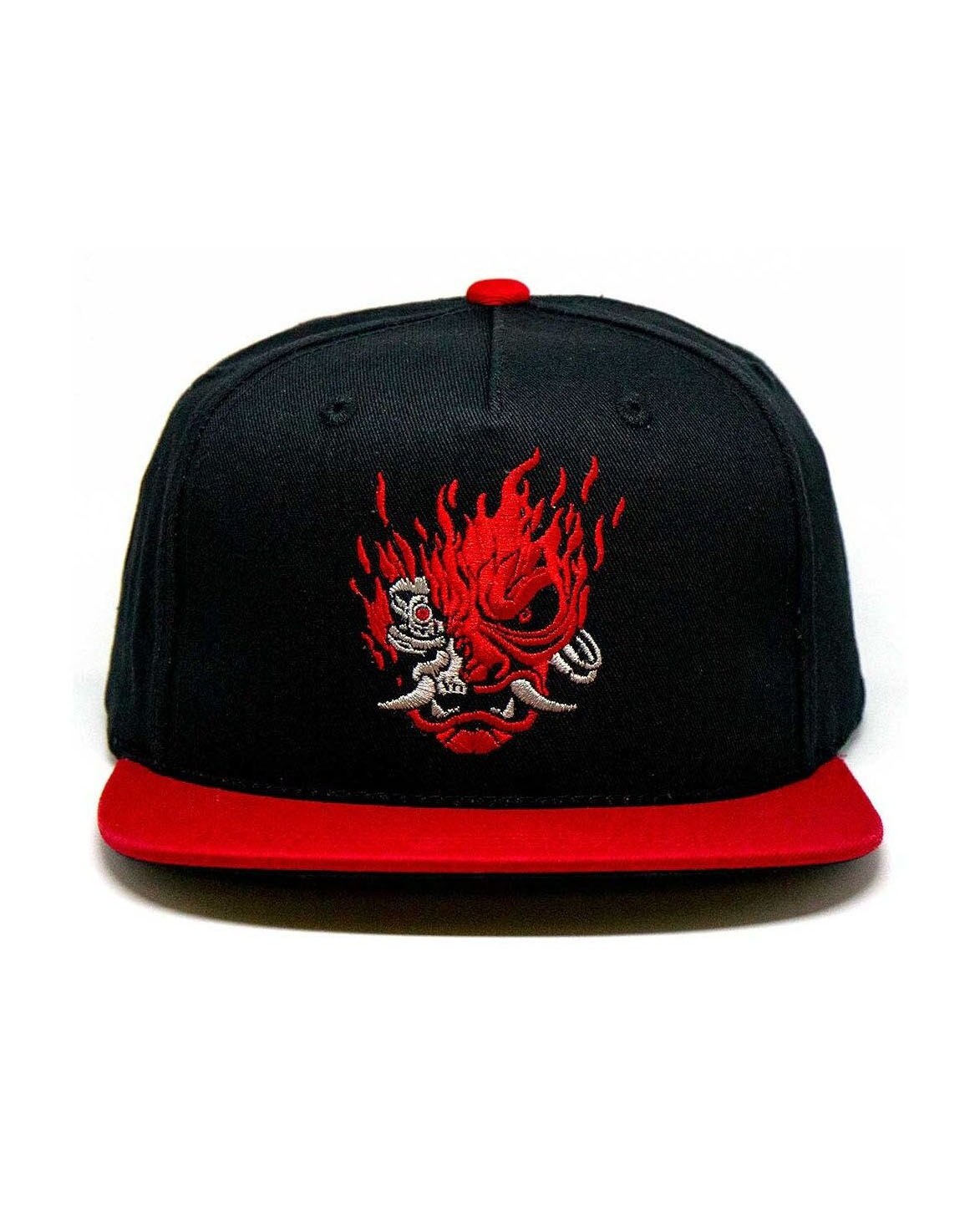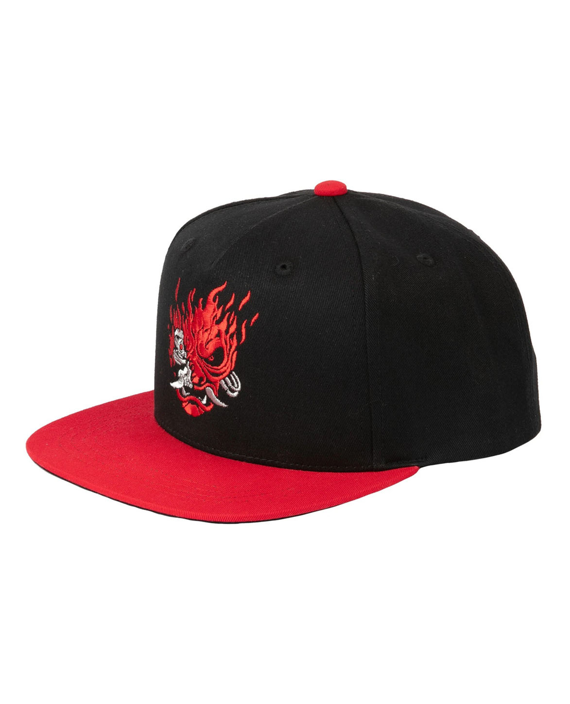 Gorra negra con roja, diseño de máscara Samurai tejida en la parte superior de la gorra.