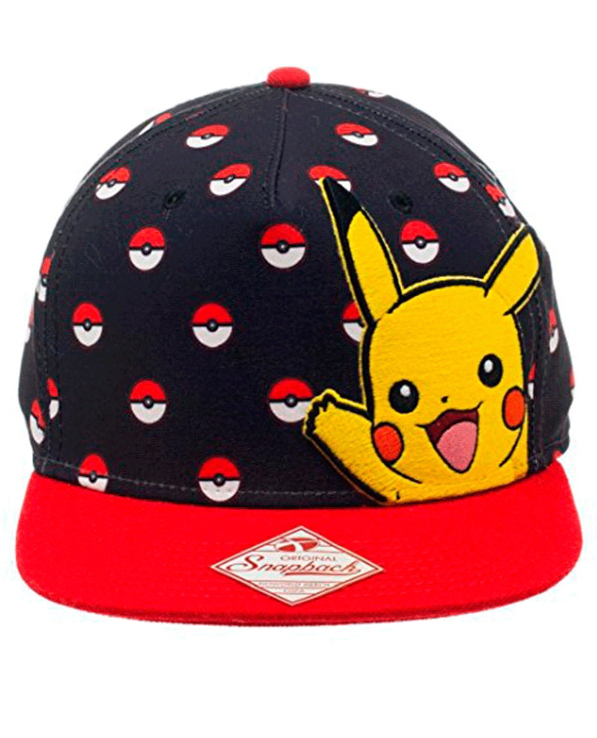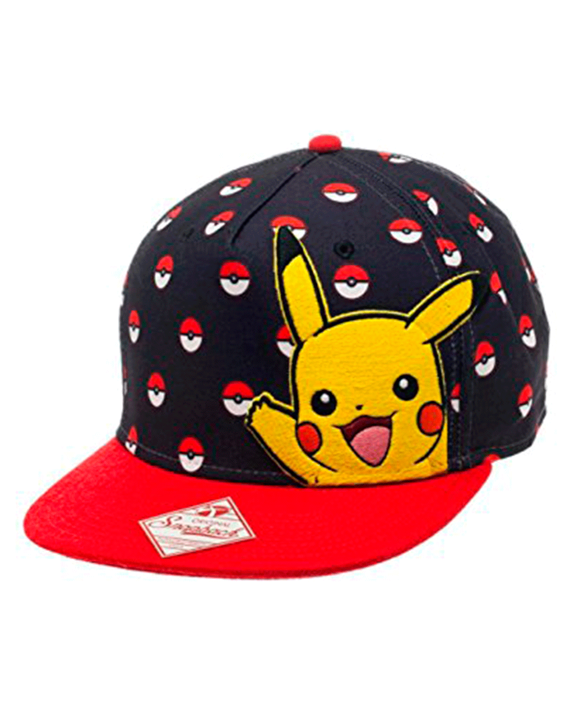 GORRA SNAPBACK POKEMON PIKACHU Y POKEBOLAS NEGRA