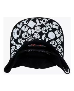 Detalles únicos: Bajo la visera, descubre un estampado integral con los personajes y elementos clásicos del juego.
