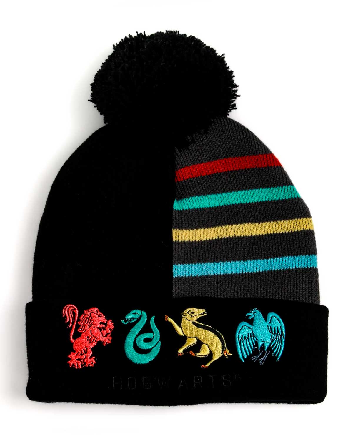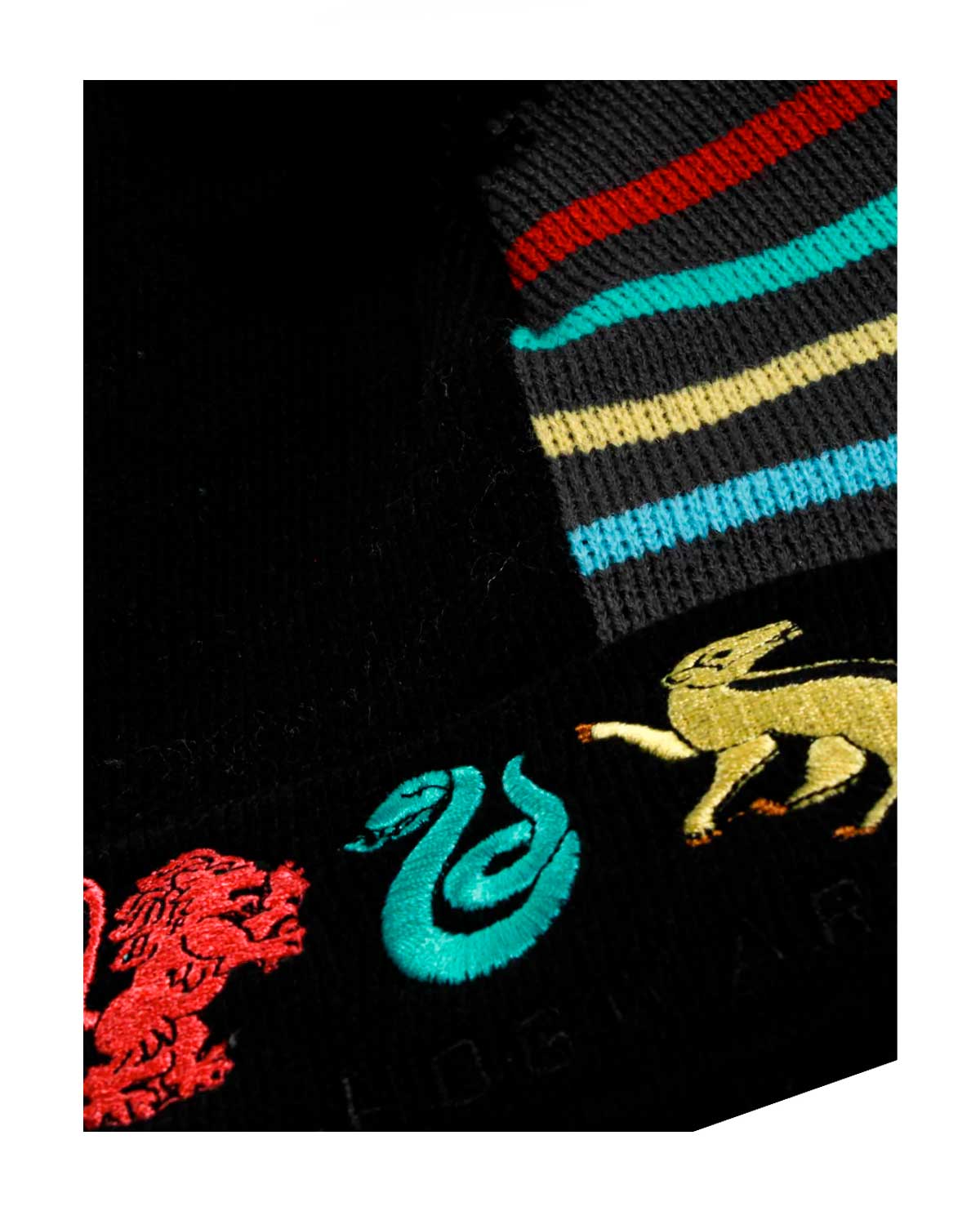 Forma parte del Mundo Mágico "Wizarding World" con este beanie con diseño de las mascotas de tus casas favoritas de Hogwarts, no importa si eres de Gryffindor, Hufflepuff, Ravenclaw o Slytherin.