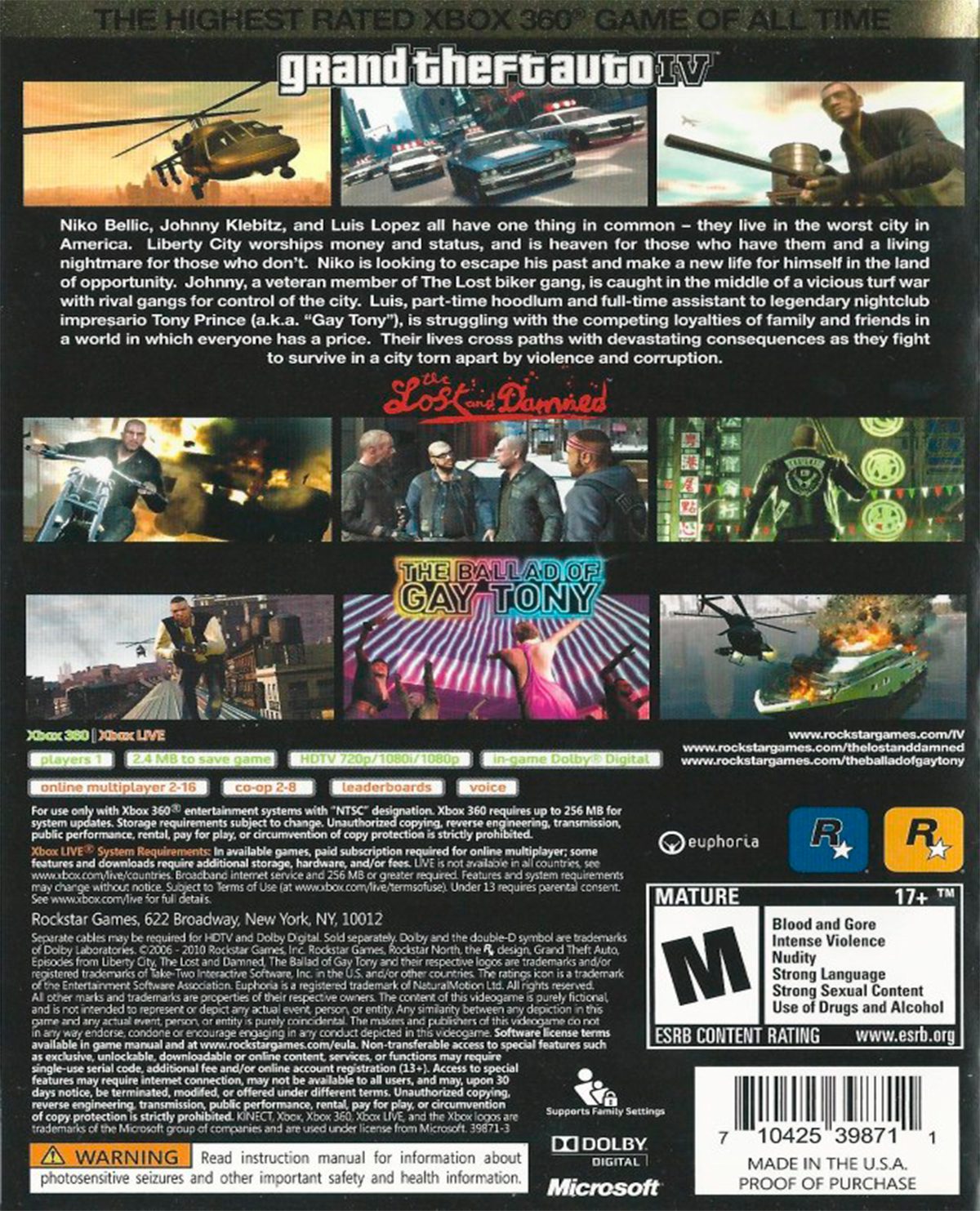 La saga GTA es garantía de calidad. Horas y horas de diversión garantizada con esta triple entrega de GTA 4 + sus dos expansiones.
