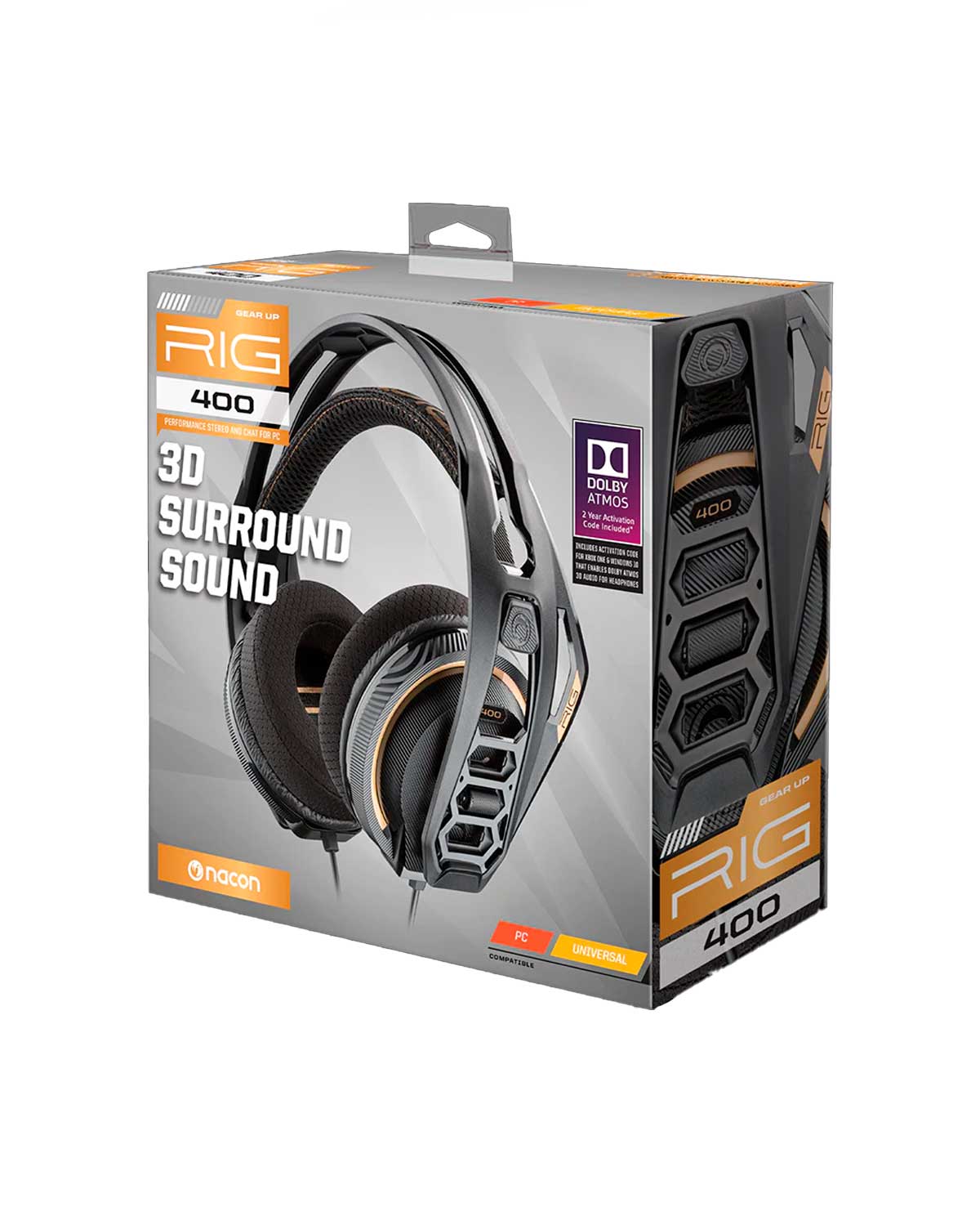 Mejora tu juego con los auriculares para juegos estéreo RIG 400 para PC con sonido surround 3D Dolby Atmos.