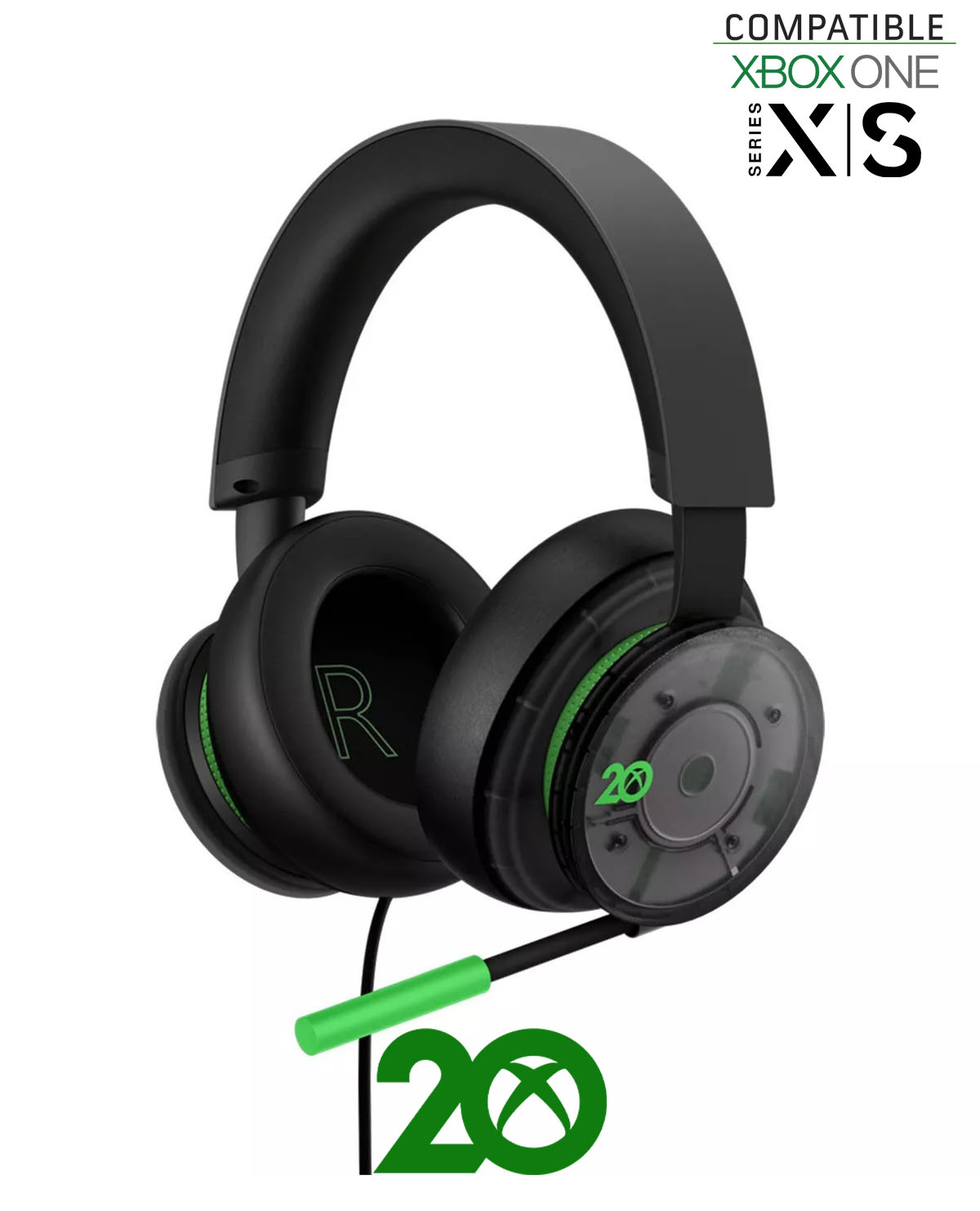 Juega alto y claro con los Audífonos estéreo de Xbox: Edición especial del 20º aniversario en color negro clásico con toques verdes que vuelven a los inicios y mucho más. Viaja por el tiempo con el micrófono verde, marcas “L” y “R” verdes en el interior de los auriculares y diales translúcidos negros en la parte externa que rinden homenaje a la consola Xbox verde translúcida original.