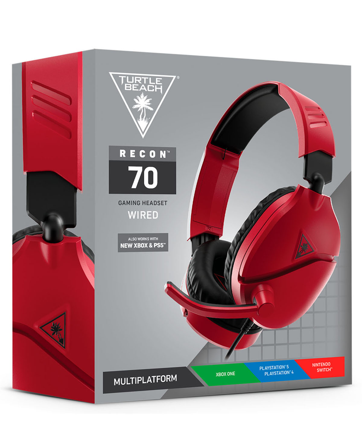 Álzate con victorias, consigue logros y mucho más con los auriculares para juego RECON 70 de TURTLE BEACH® para PS4™ Pro y PS4™. Cuentan con el diseño de auriculares puntero, cómodo y ligero de Turtle Beach para jugar durante horas, altavoces de 40 mm de alta calidad y almohadillas exteriores de piel sintética premium que te permiten escuchar agudos cristalinos y graves potentes al tiempo que atenúan el ruido. El reconocido micrófono de alta sensibilidad de Turtle Beach hace que se te escuche alto y claro, y se abate fácilmente para silenciarlo. Por último, la conexión de 3,5 mm es perfecta para usarlos con controles de PS4™, Xbox One, Nintendo Switch, PC y dispositivos móviles.