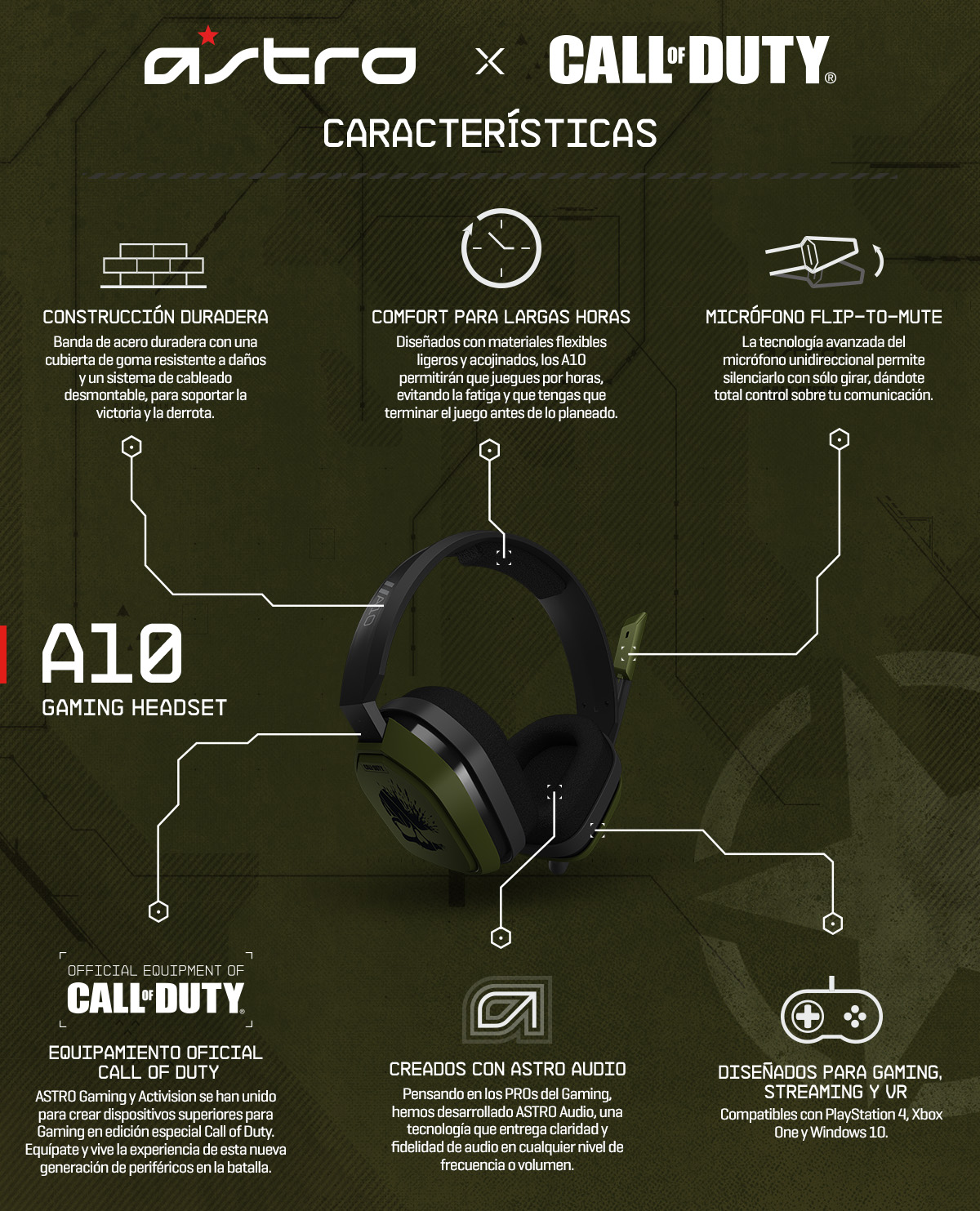 Calidad de sonido: afinado para juegos, el A10 presenta audio inmersivo y preciso. La baja latencia y la comunicación de voz precisa significa que siempre está sincronizado