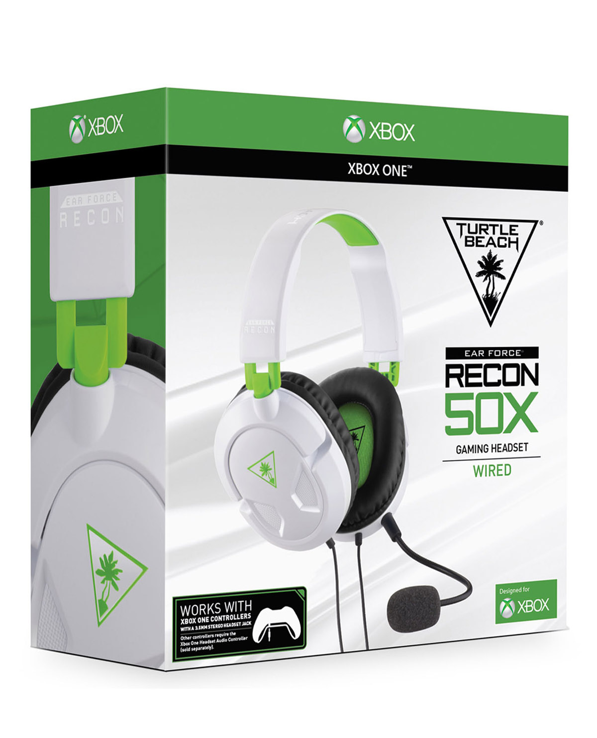 Lleva el sonido de juego y la comodidad en Xbox One al siguiente nivel con los auriculares para juegos RECON 50X WHITE de TURTLE BEACH®. Los RECON 50X WHITE cuentan con el último diseño cómodo y ligero de Turtle Beach, y los grandes altavoces exteriores de 40 mm te permiten escuchar agudos cristalinos y potentes bajos, además de cómodos controles integrados para acceder rápida y fácilmente al botón de silenciar micrófono y el volumen principal. Los RECON 50X WHITE también incluyen un micrófono extraíble que puede retirarse cuando ves películas o escuchas música, y la entrada de 3,5 mm es perfecta para usarlos con el nuevo mando de Xbox One, PS4™ Pro y PS4™, PC, Mac y dispositivos móviles y tabletas compatibles.