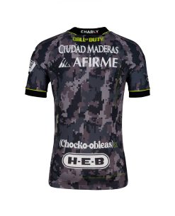 Su diseño combina un camuflaje con el icónico patrón pixeleado de War Far II en escala de grises, inspirados en las icónicas vestimentas de sus personajes, además de sus miras y radares que buscan detectar cualquier peligro; plasmados en un vibrante tono amarillo neón, haciendo que estos detalles no sólo añadan emoción y modernidad, sino que también te harán sentir siempre listo para una nueva misión. Y por supuesto, el fiel escudo de los Gallos Blancos detectado por una mira en el pecho que resalta tu lealtad al Club de manera única.