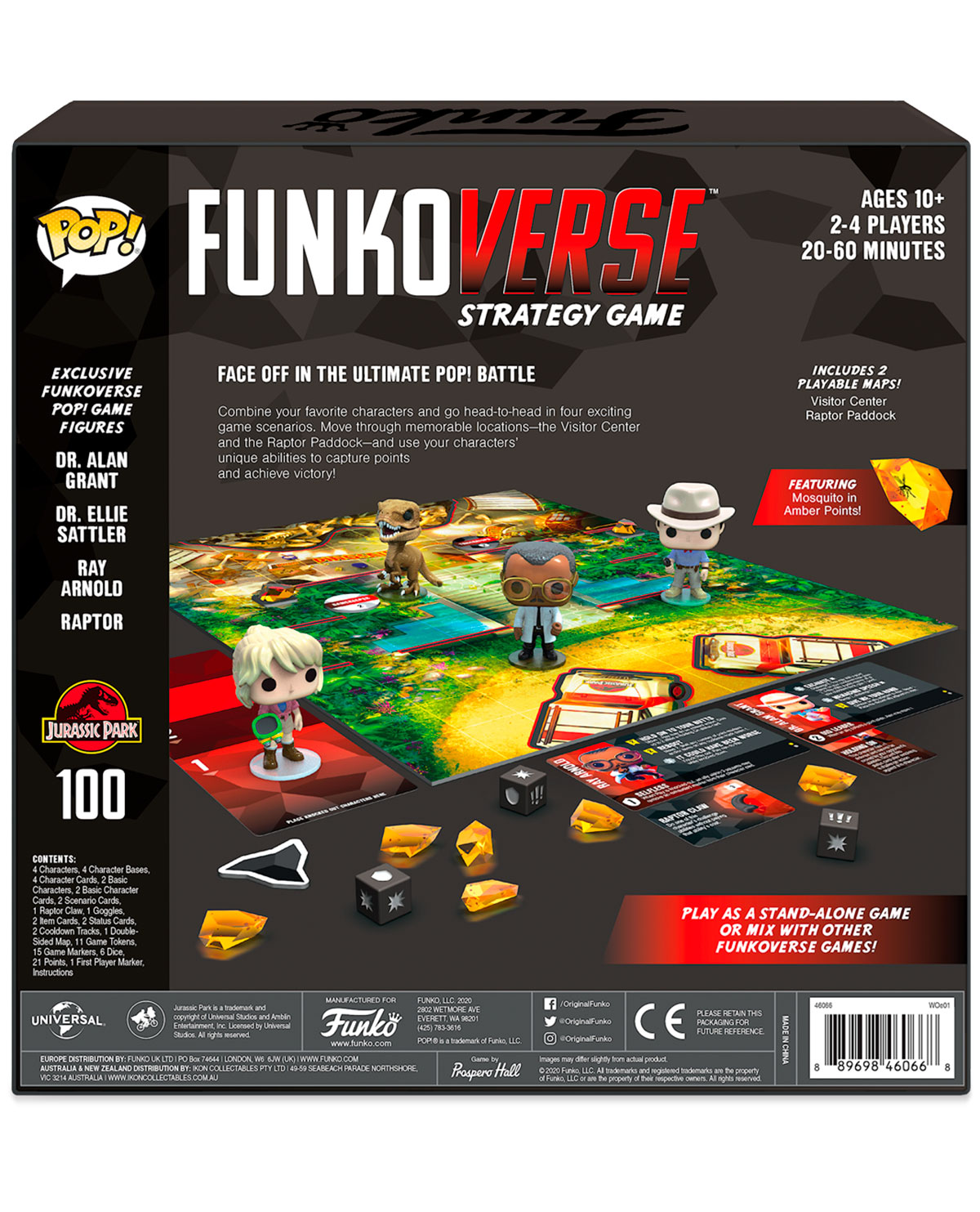 – Cuatro figuras Pop de Jurassic Park: Alan Grant, Ellie Sattler, Ray Arnold y dinosaurio.