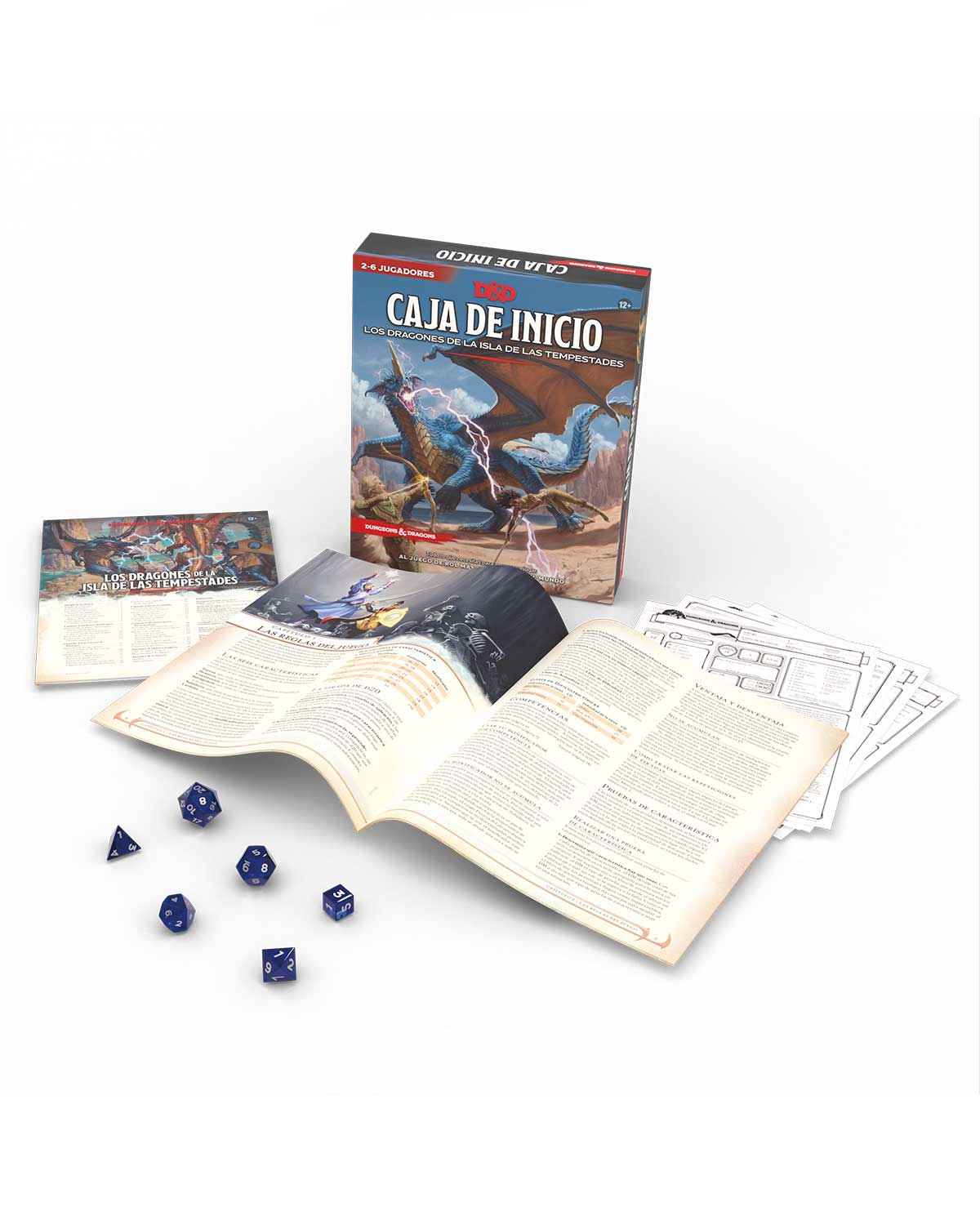 Esta caja contiene las reglas esenciales del juego y todo lo que necesitas para interpretar a personajes heroicos que se ven involucrados en una guerra ancestral entre dragones mientras intentan descubrir los secretos de la Isla de las Tempestades.