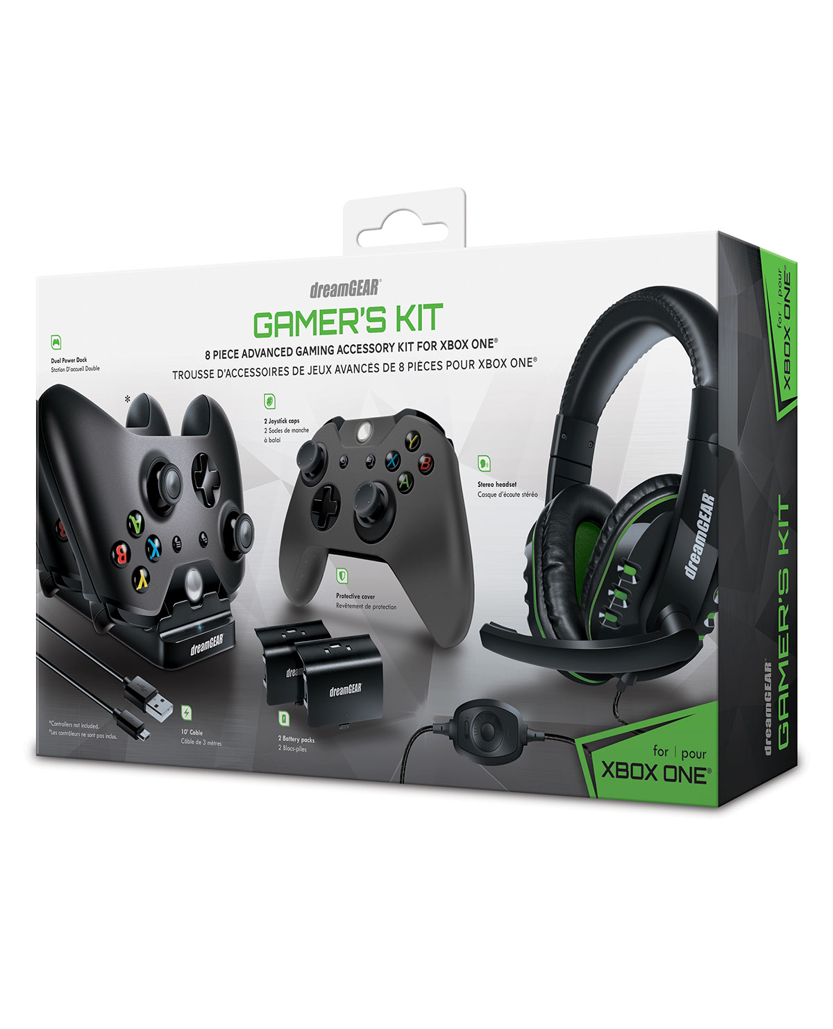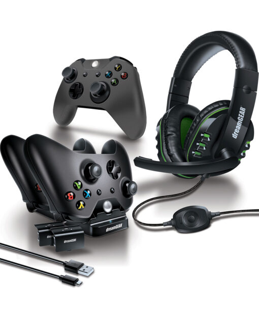 Este Gamer’s Kit es el complemento perfecto para cualquier jugador de Xbox One, ya que te ofrece una base de carga doble con dos paquetes de baterías recargables de hasta 6 horas de duración, un cable de sincronización , auriculares con micrófono boom y una cubierta protectora de silicona con tapas de joystick con textura.