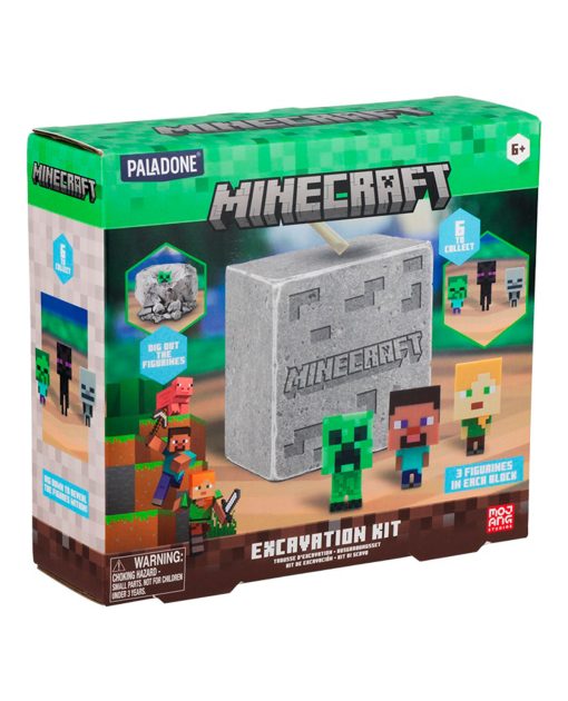 Convierte la exploración en una aventura real con este emocionante kit de excavación inspirado en el universo de Minecraft. Dentro de un bloque misterioso se esconden tres figuras sorpresa de personajes icónicos como Steve, Alex o Creeper, esperando ser desenterradas por manos curiosas.