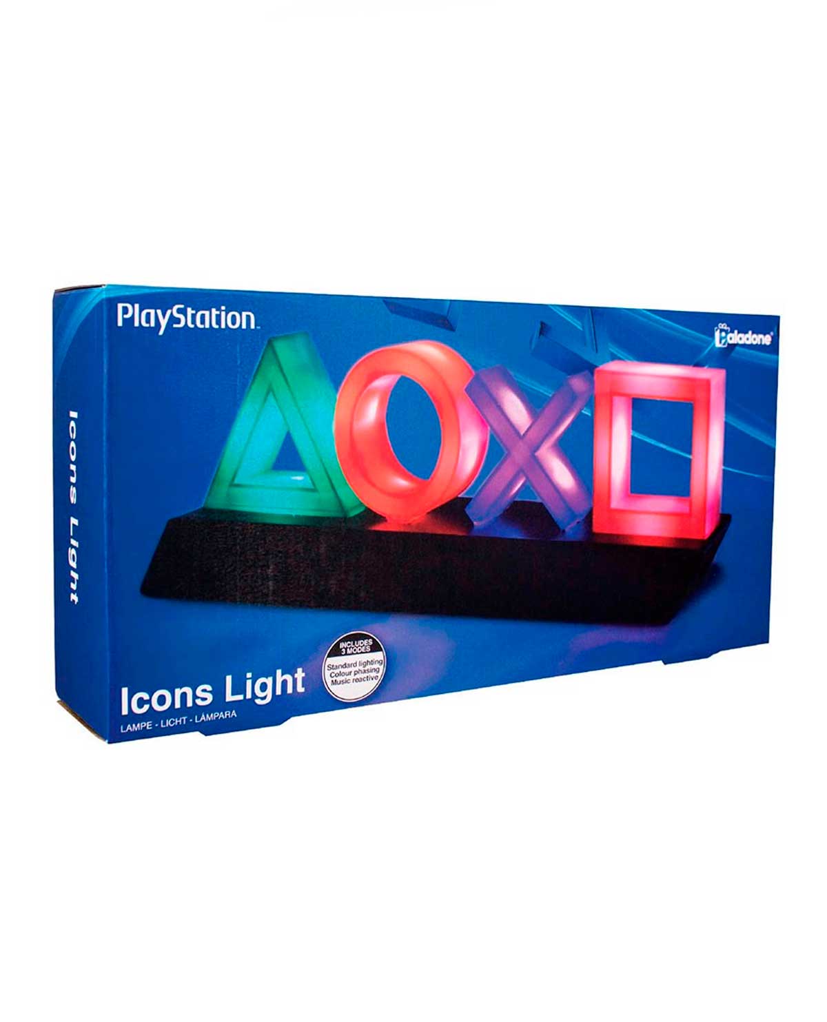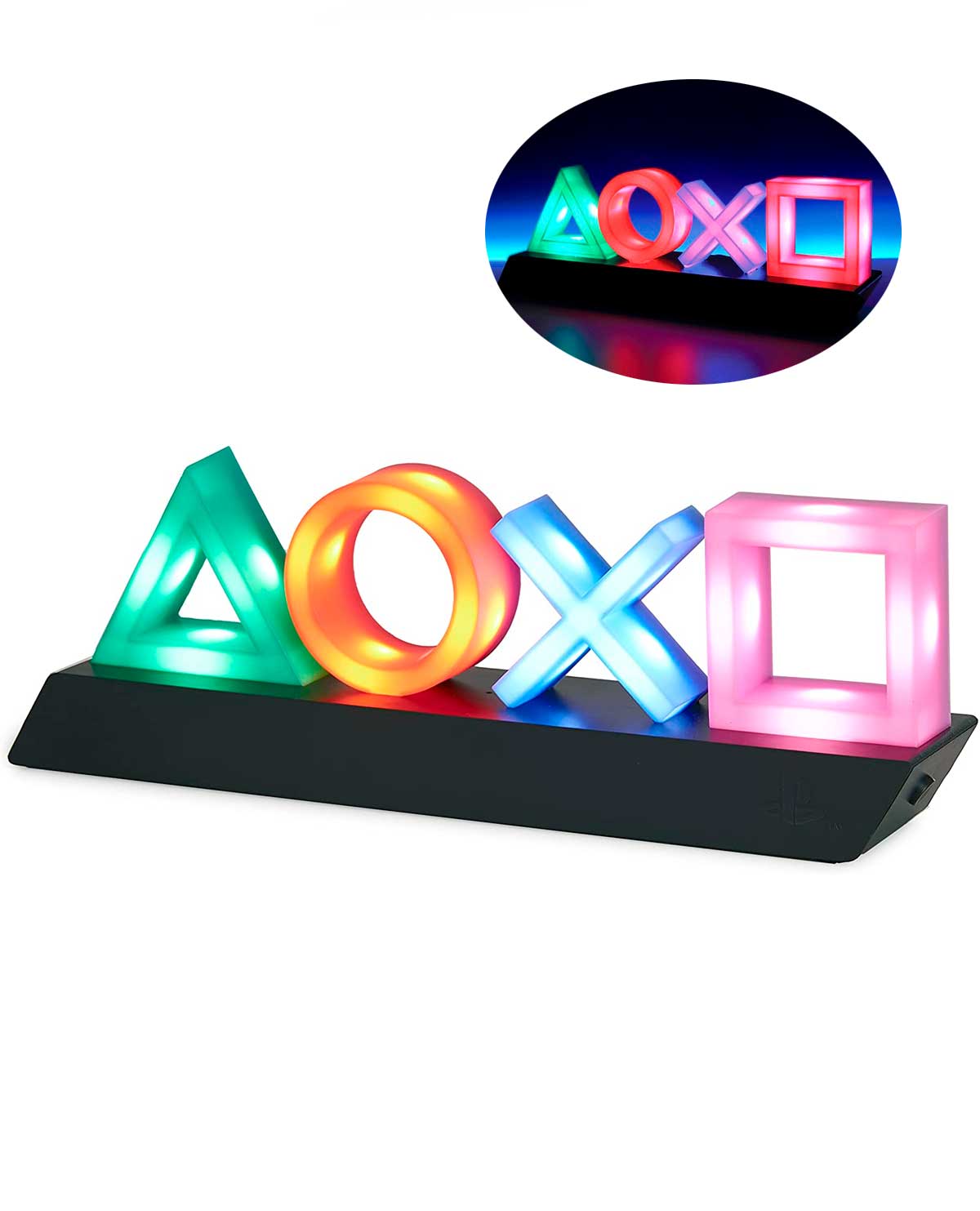 Esta luz de íconos de PlayStation es perfecta para los jugadores y presenta los íconos de los botones del control clásico de PlayStation en una elegante base negra, que es un complemento ideal para cualquier dormitorio o sala de estar. Con tres configuraciones diferentes, que incluyen iluminación estándar, control de fase de color y modo de reactivación de música, PlayStation Icons Light es el complemento perfecto para tus juegos.