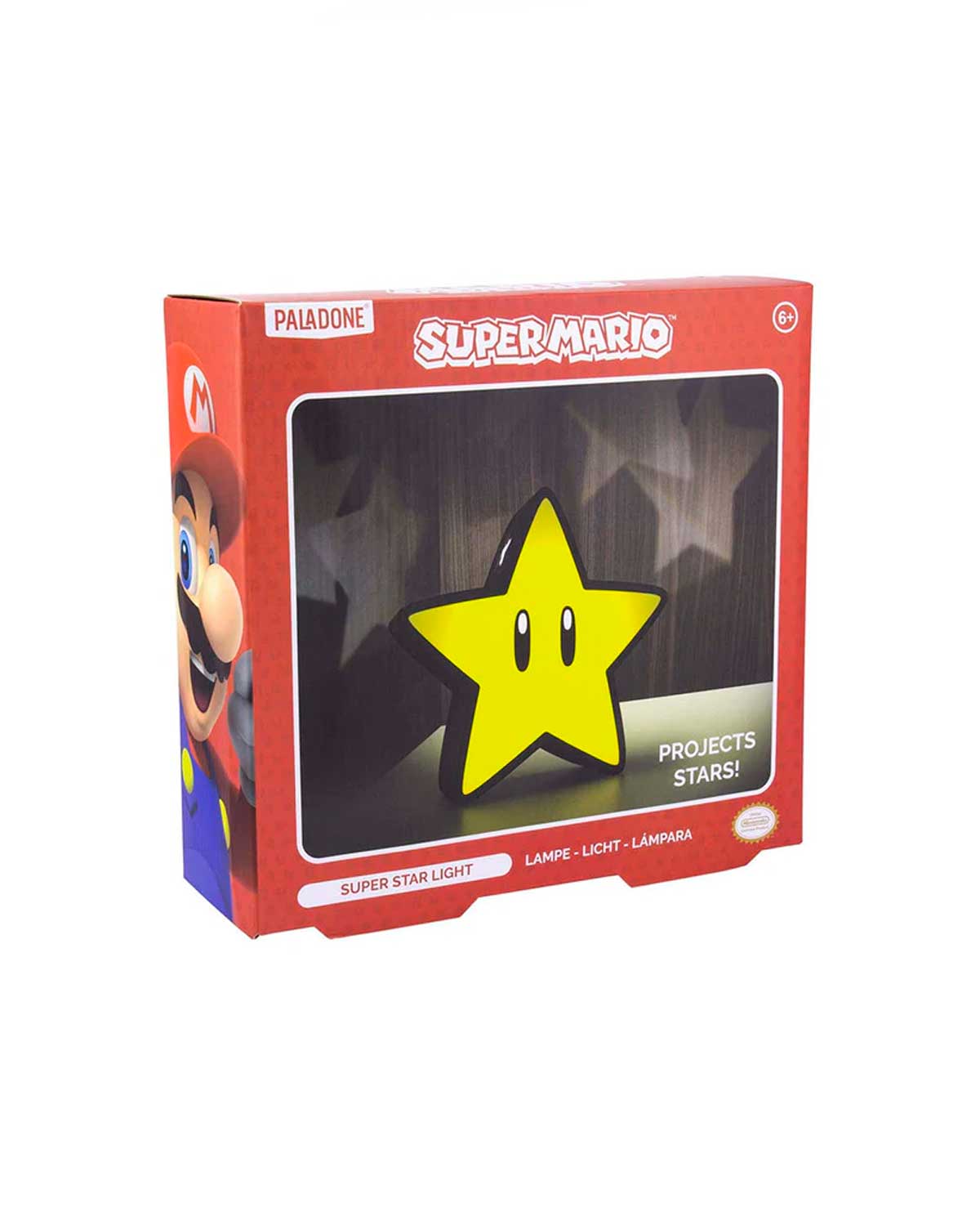 ¡Ilumina tu spot favorito con esta increíble lámpara inspirada en Super Star de Mario Bros! Además, proyectará estrellas en las paredes cercanas a la misma.