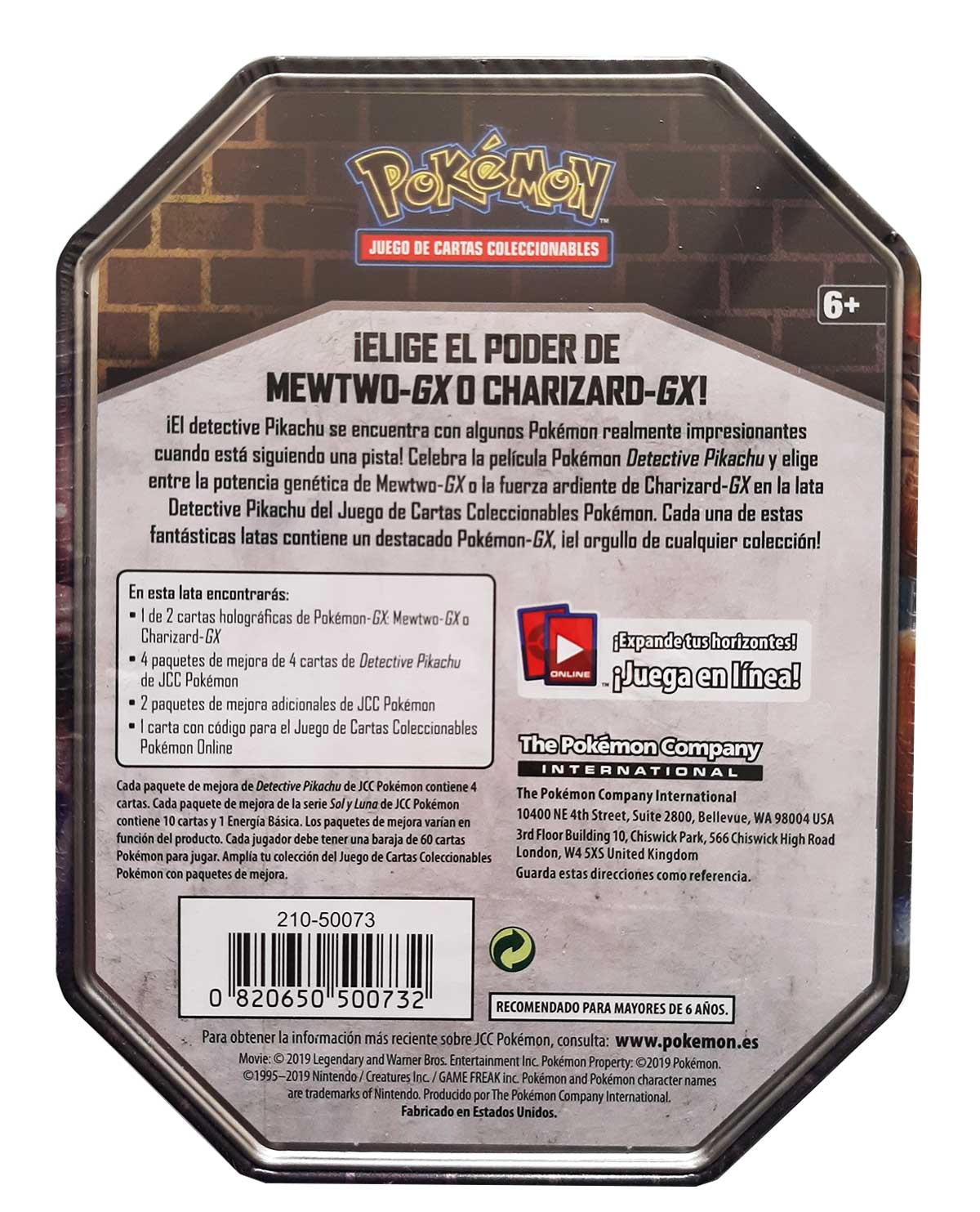 ¡El detective Pikachu se encuentra con algunos Pokémon realmente imprecionantes cuando está siguiendo una pista! Celebra la película Pokémon Detective Pikachu y elige entre la potencia genética de Mewtwo-GX o la fuerza ardiente de Charizard-GX en la lata Detective Pikachu del Juego de Cartas Coleccionables Pokémon. Esta lata contiene un destacado Pokémon-GX, ¡el orgullo de cualquier colección!