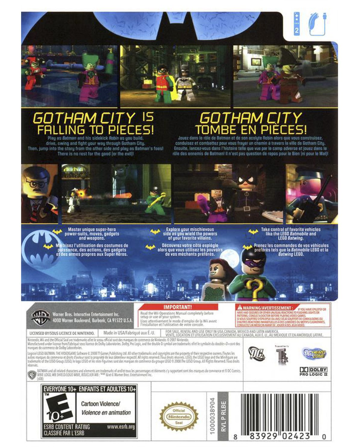 Traveller Tales nos sumerge de nueva cuenta en el universo Lego de la mano del héroe más popular de DC Comics, construye vehículos asombrosos, descifra interesantes acertijos y comparte la acción con otro compañero para que juntos derroten al mal que aqueja a la ciudad, solo el caballero de la noche y el chico maravilla con capaces de volver a encerrar a estos criminales.