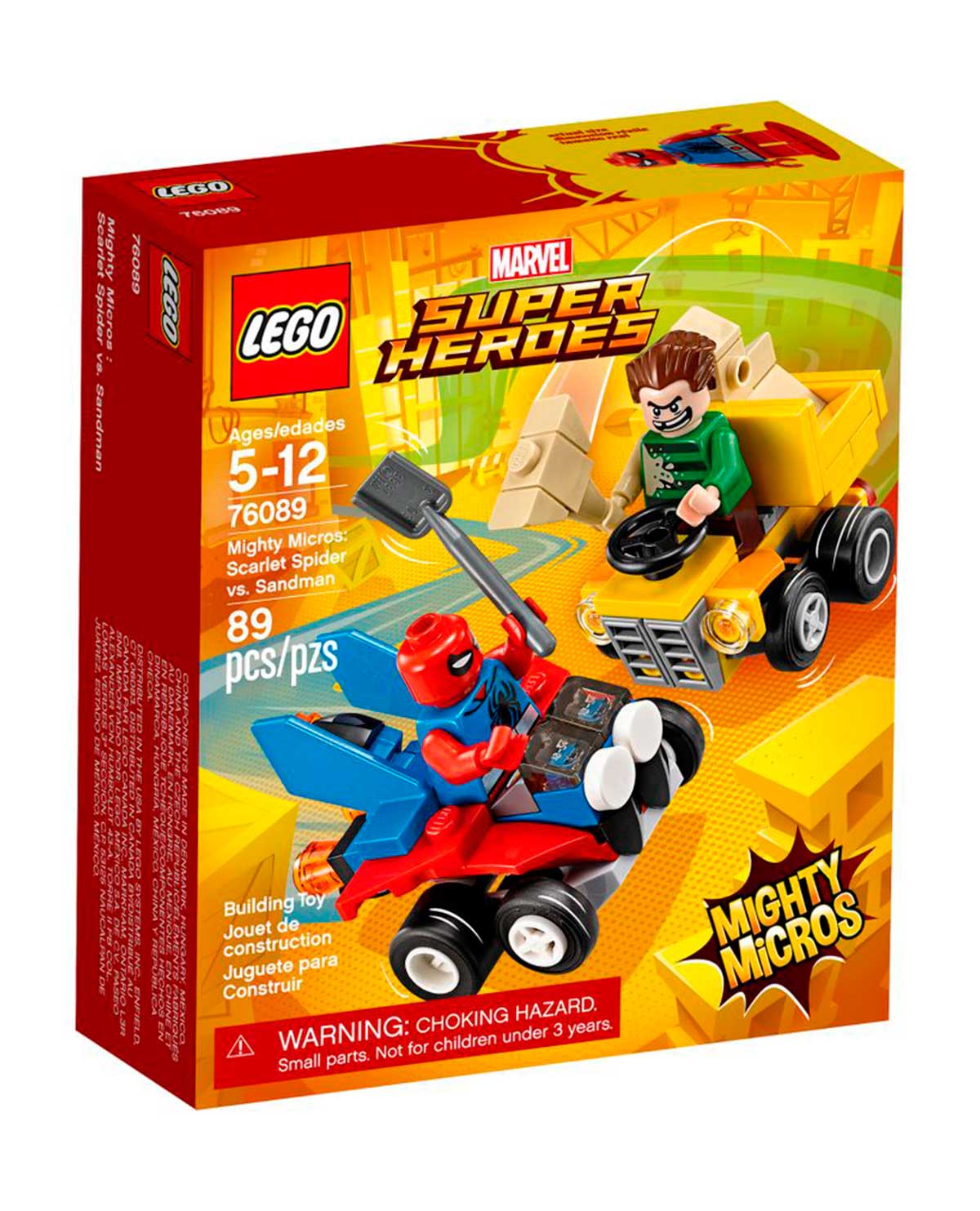 ¡Libra una asombrosa batalla Mighty Micros contra Sandman con el jet arácnido de Scarlet Spider! Apártate del vehículo arenero del s upervillano y esquiva su poderosa maza de arena. Usa después la pala de Scarlet Spider para recoger arena del vehículo arenero.