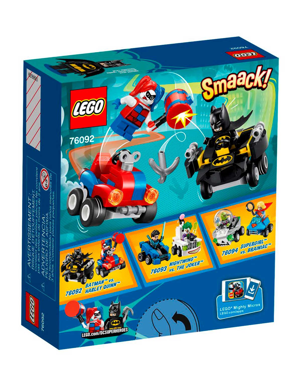 ¡Disfruta a lo grande de la acción al estilo Mighty Micros enfrentando al batiplano de Batman contra el auto “de cuerda” de Harley Quinn! Esquiva el mazo gigante de Harley Quinn y contraataca con el gancho de Batman. ¿Quién vencerá en este legendario combate? ¡Tú decides!