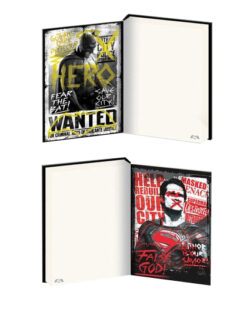Anota todos tus argumentos, pensamientos e ideas sobre lo que es correcto y lo que no es correcto con esta libreta inspirada en la película de Batman vs Superman, desmustra tu conocimientos en cada una de las 240 hojas que tiene este diario para ti. Cada hoja es de color blanca, un diseño sencillo pero útil que te servirá cada día de tu vida heroica. en la esquina inferior de cada página verás el logotipo de la película, al principio del cuaderno verás un arte fantástico del caballero de la noche, mientras al final encontrarás uno de Superman.