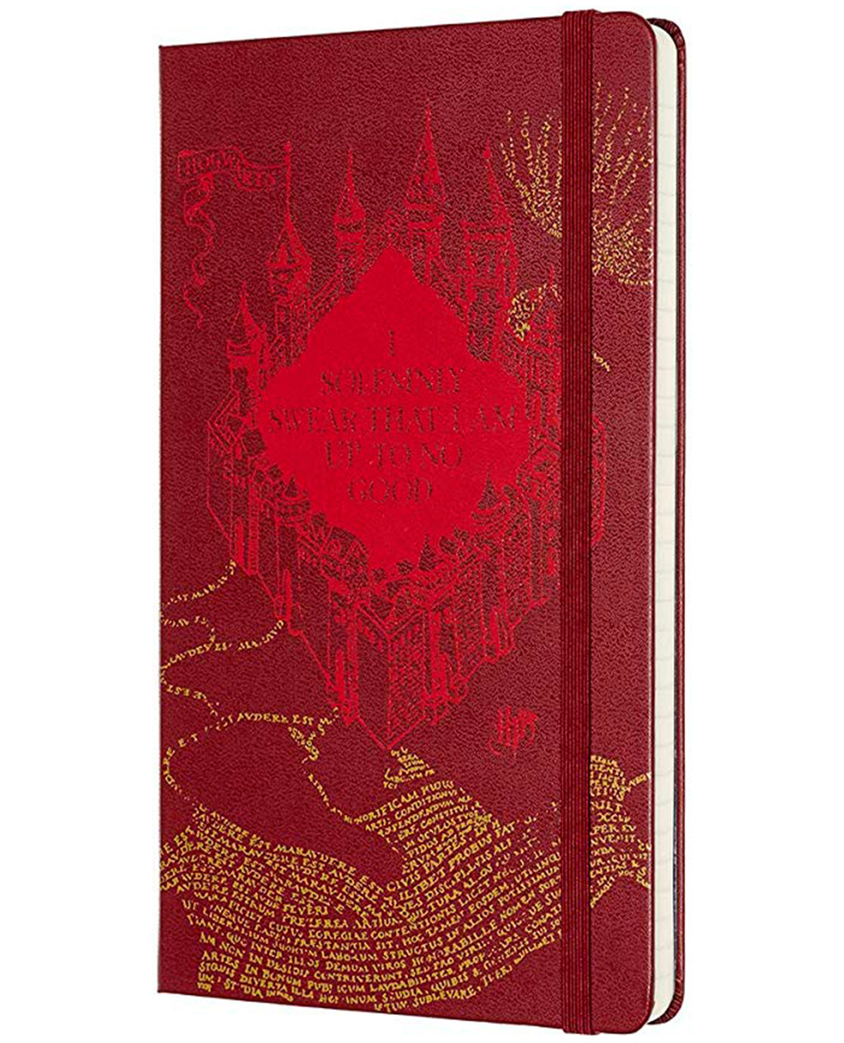 Juramos solemnemente que cuidarás este diario mágico, inspirado en el mapa secreto de Hogwarts que el padre de Harry co-creó. La parte frontal del diario retrata la cubierta del mapa y cuenta con bordes dorados en las páginas.