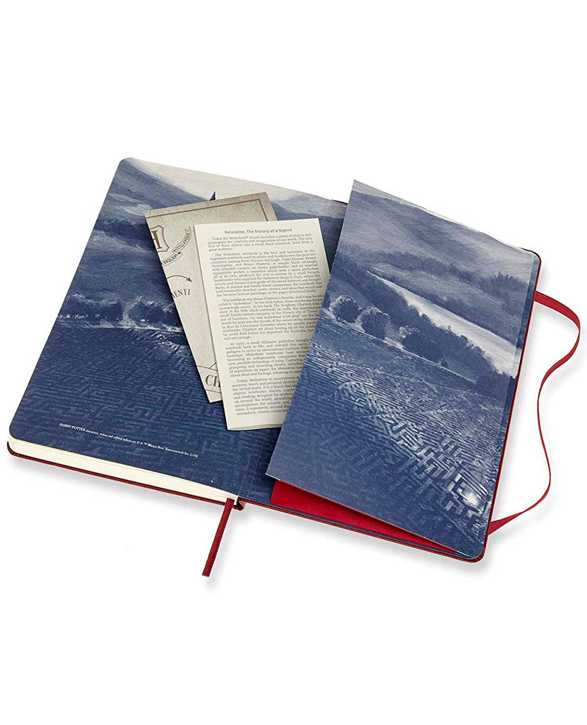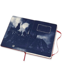 Tiene 192 páginas y es perfecto como un cuaderno de bocetos, un diario o una agenda. Las parte delantera así como la parte trasera son una interpretación artística del mapa de de los terrenos del castillo y pasillos ocultos.