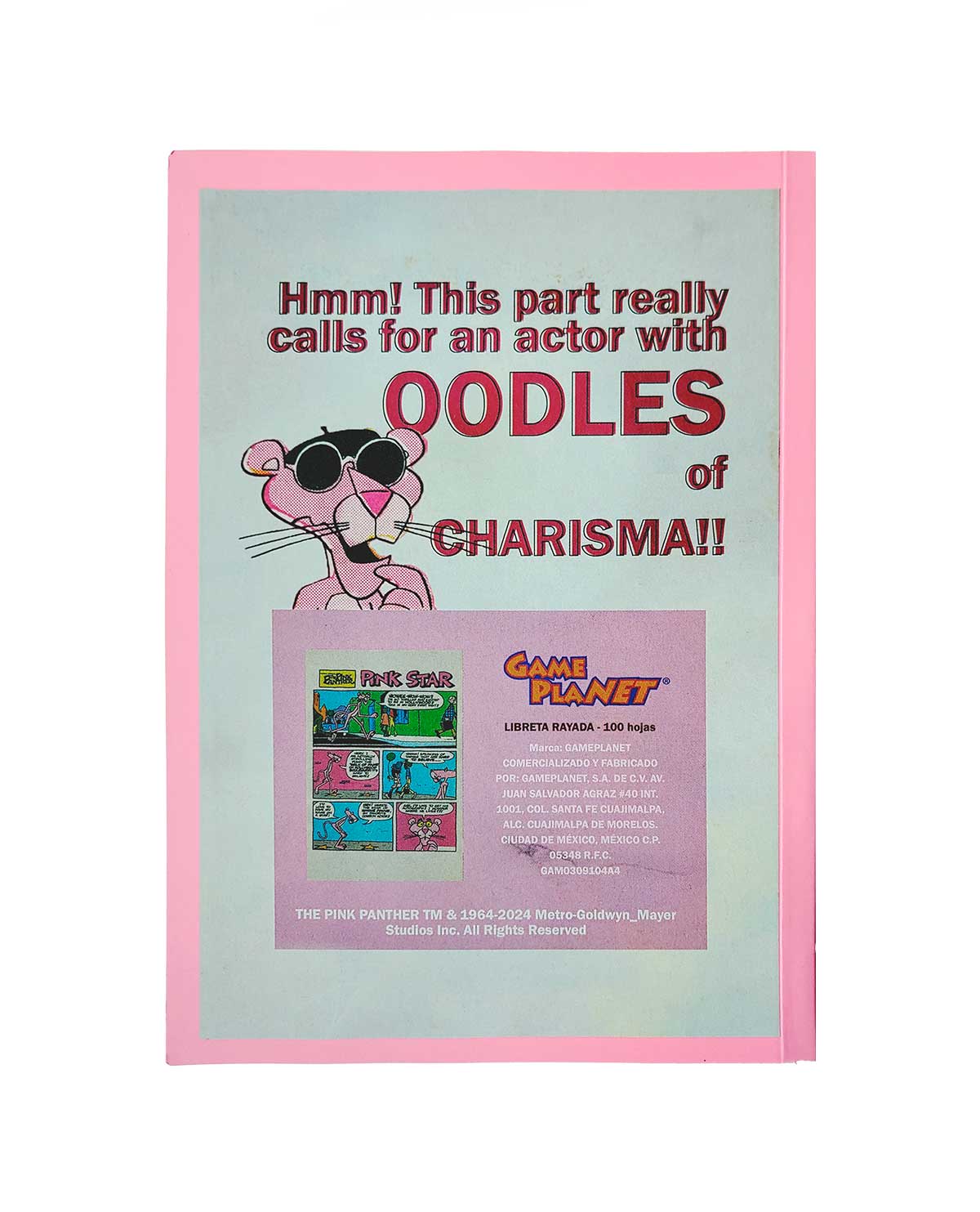 Esta libreta es un homenaje perfecto al estilo glamuroso y sofisticado de la Pantera Rosa en su versión más clásica, capturando la esencia de la famosa película y el cómic que ha encantado a generaciones.