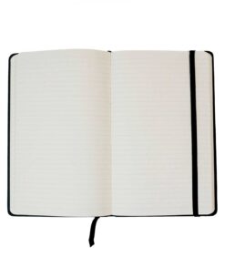 80 hojas rayadas, separador de listón y resorte negro, con folder interior en la contraportada.