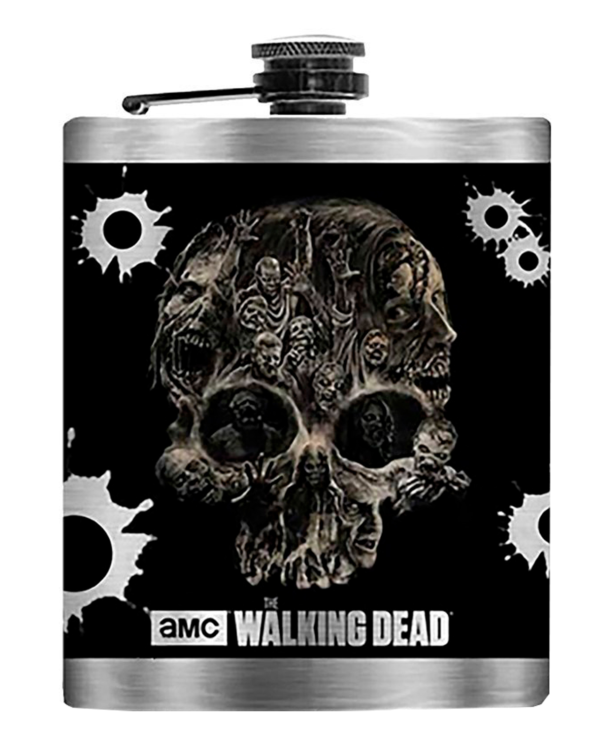 La muerte es un final que nadie podrá escapar, tienes dos formas de enfrentar esta realidad, una es temerle o puedes volverte su amigo. En un ataque zombie, no es una opción temerle a la muerte, la única opción para seguir sobreviviendo es afrontarla. Mejor demuestra que no tienes nada que temer con esta cantimplora que recrea una imagen de calavera con diferentes zombies.