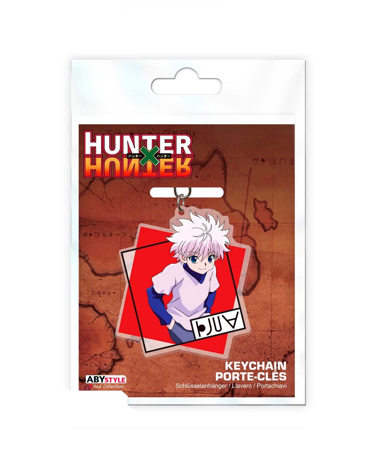 Este genial llavero acrílico Hunter x Hunter Killua presenta una impresión de alta calidad en acrílico con el asesino de la familia Zoldyck Killua en el en la parte delantera y el logo de Hunter x Hunter en la parte trasera.