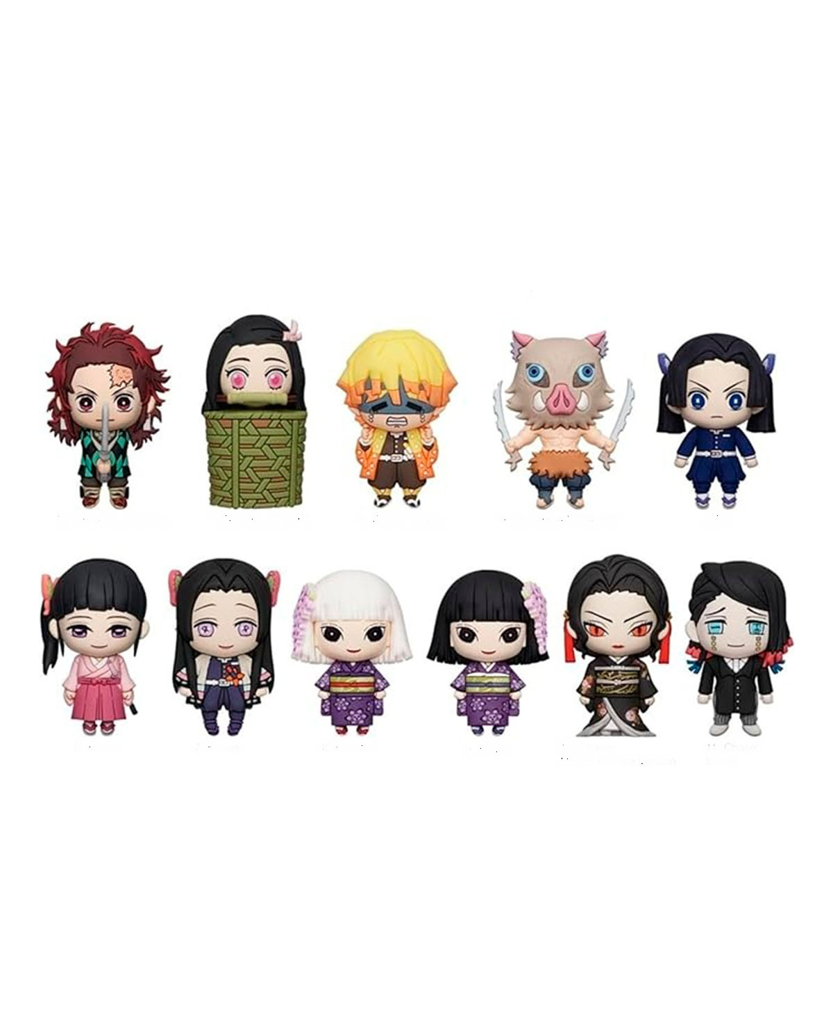 - Diseño compacto y adorable, con personajes como Tanjiro, Nezuko, Zenitsu, Inosuke y más
