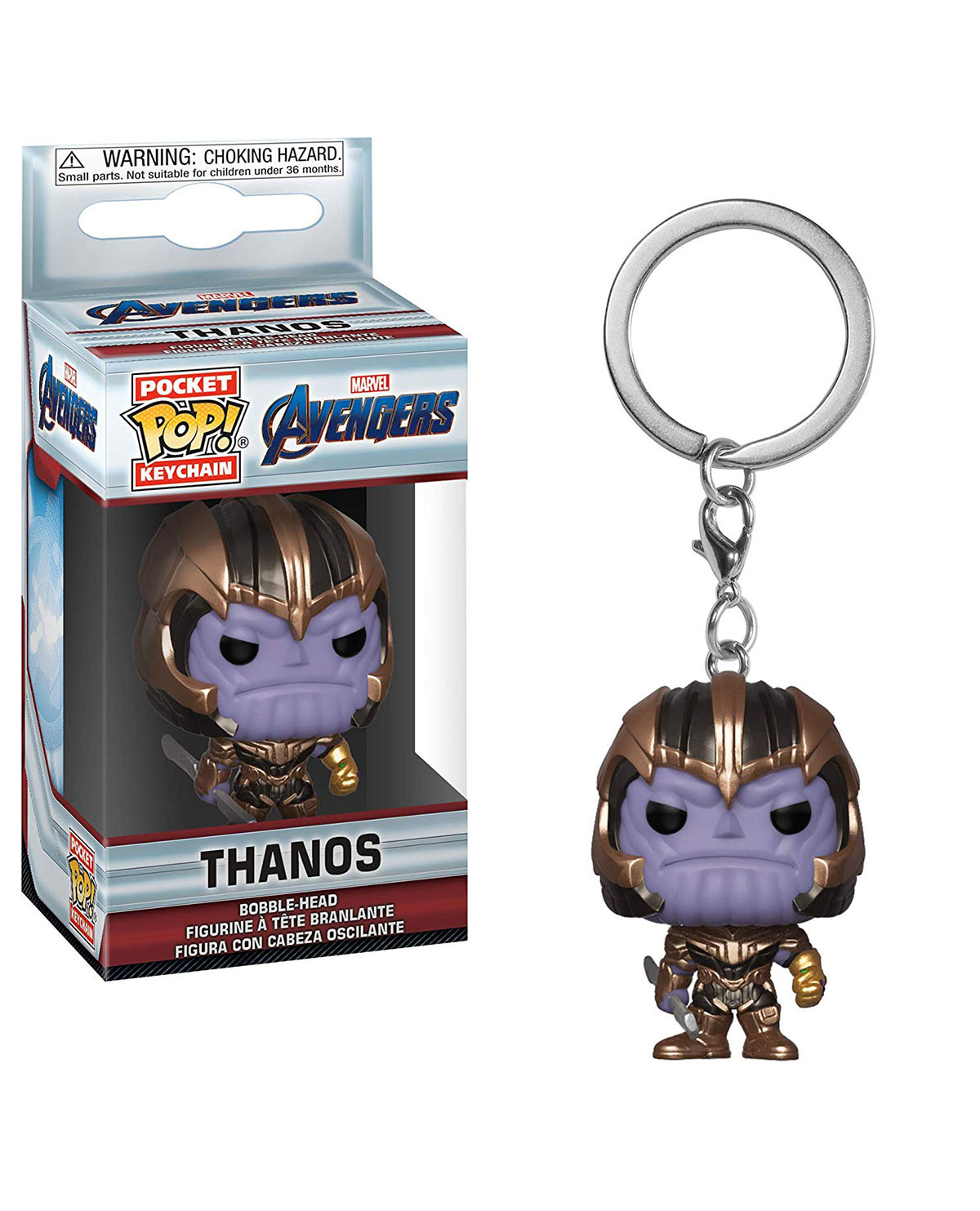 ¡El malvado Thanos puede acompañarte a donde quiera que vayas con este llavero Funko Pop!