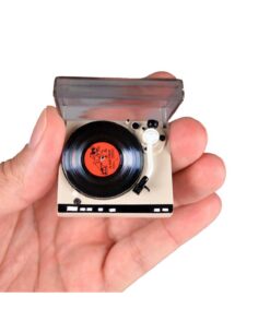 La World’s Coolest Turntable presenta un brazo de tono móvil, una fuente giratoria y una luz estroboscópica. Incluso incluye un pequeño disco de vinilo “falso” para una experiencia de vinil única en su clase.