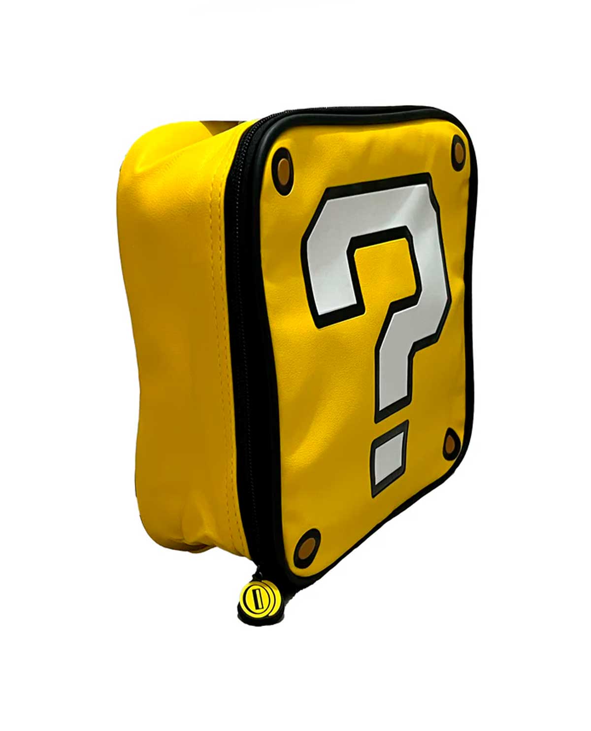 Cuenta con un compartimento principal espacioso para guardar tus alimentos y bebidas, además el cierre mantiene seguros tus objetos más valiosos. El diseño en forma de Question Block de Mario Bros es único y divertido, lo que lo convierte en un accesorio ideal para cualquier fanático del videojuego.