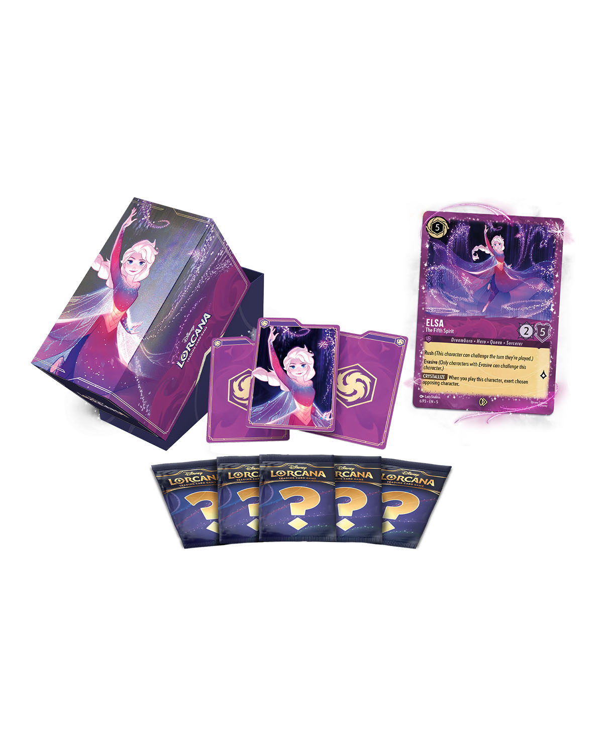 - Tarjeta exclusiva metalizada con una ilustración inédita de Elsa – El Quinto Espíritu, perfecta para destacar en tu colección.